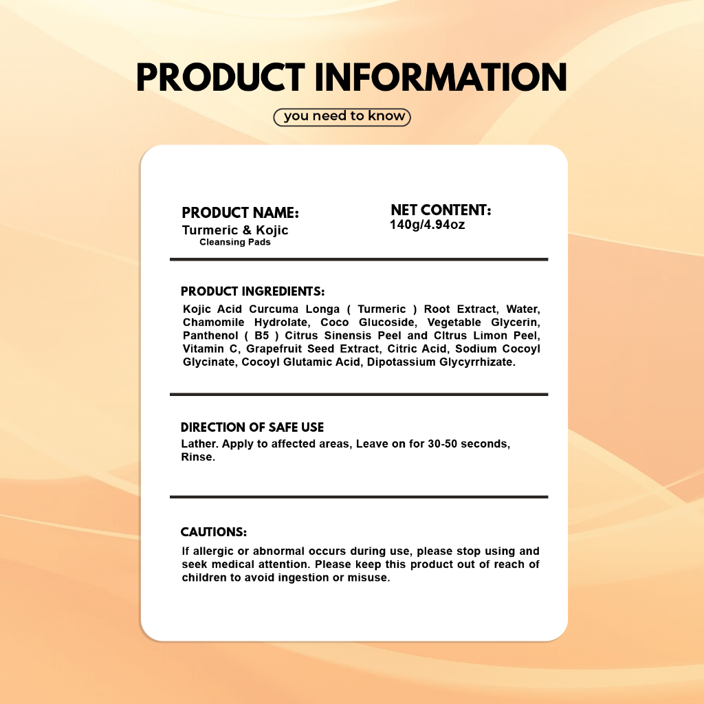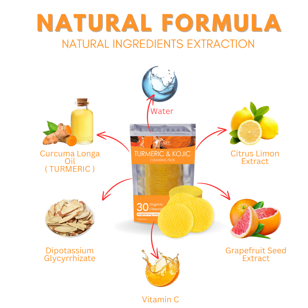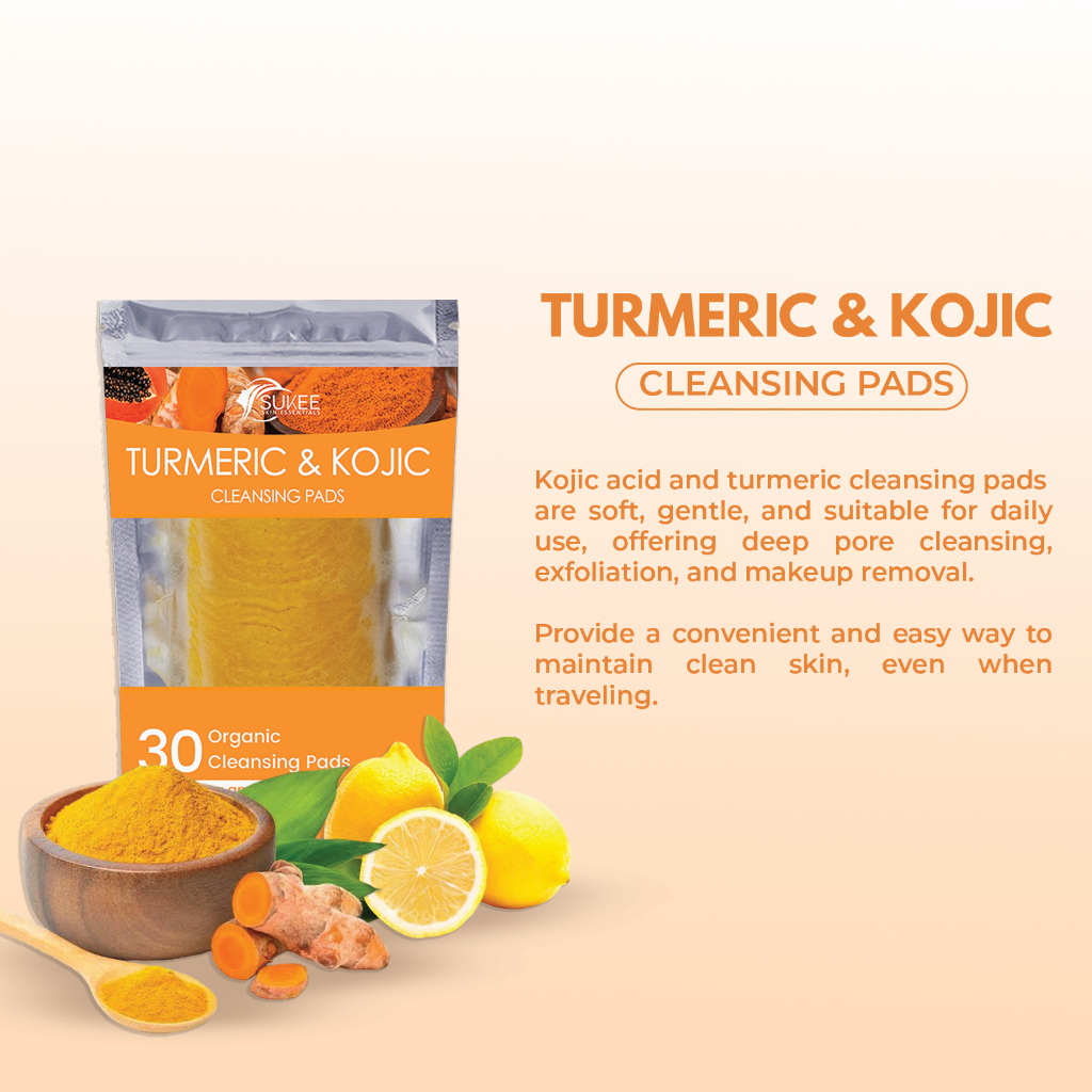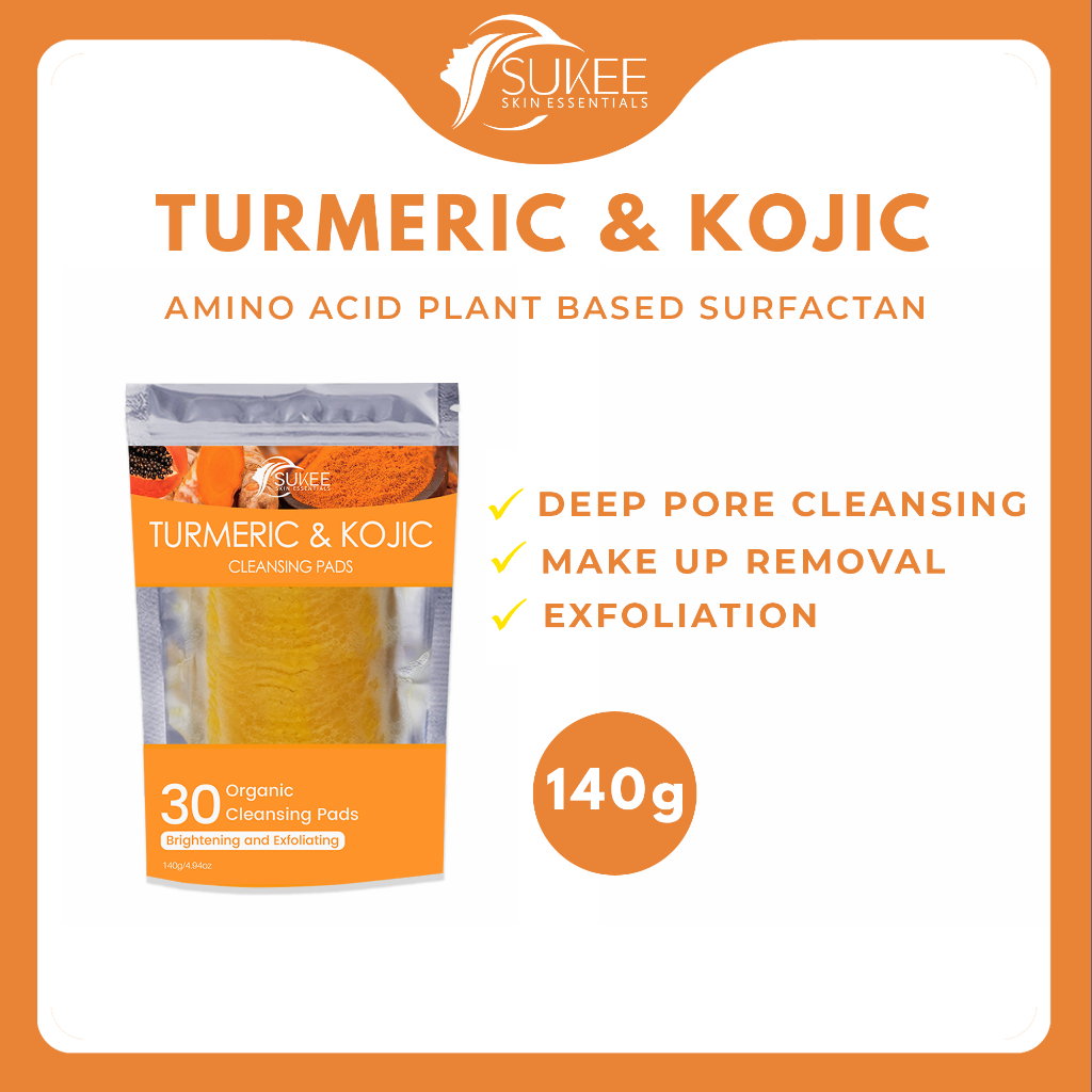 SUKEE Turmeric & Kojic Cleansing Pads 30Organic Brightening and Exfoliating Pads 140g [FDA APPROVED]