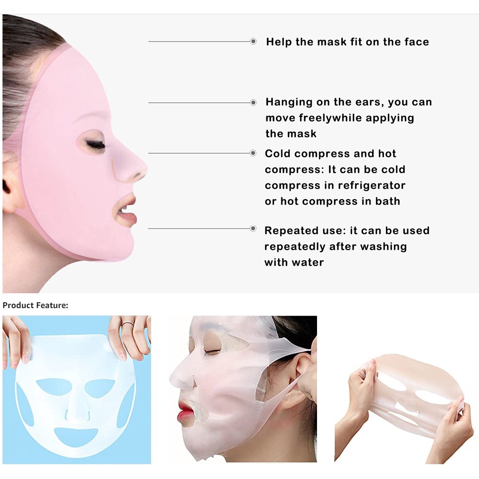Silicone Skin Mask, Korean Face Lifting Double Chin Reducer, Reusable Anti-Wrinkle Silicone Face Mask Holder for Sheet Masks, Moisturizing Facial Mask Cover, Prevent Evaporation, B