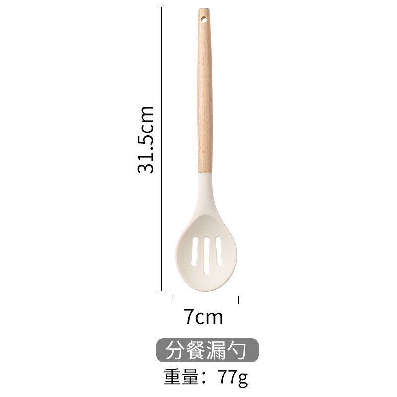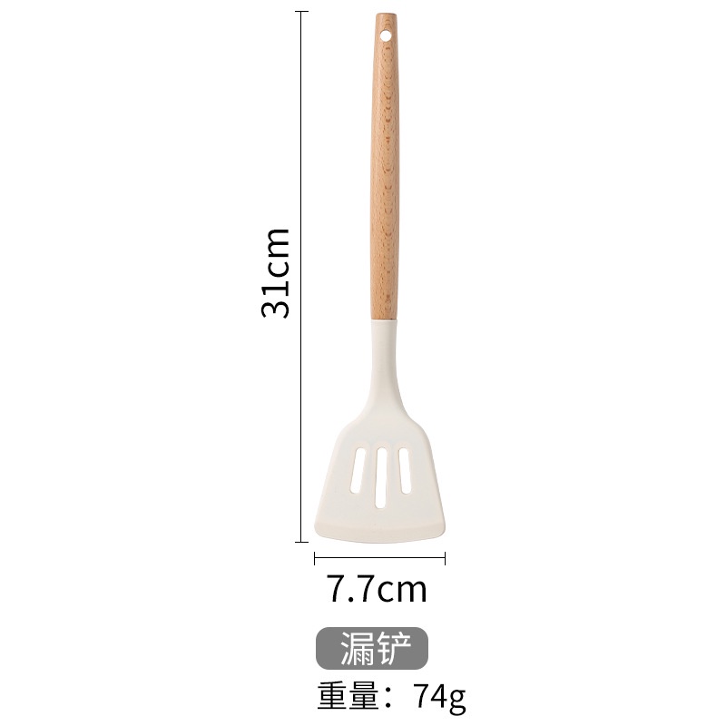 Wooden Handle White Silicone Kitchenware Set Cooking Non stick Pot Kitchenware Set Wooden Handle Silicone Kitchenware Household Pot Shovel Soup Spoon Cooking Tools