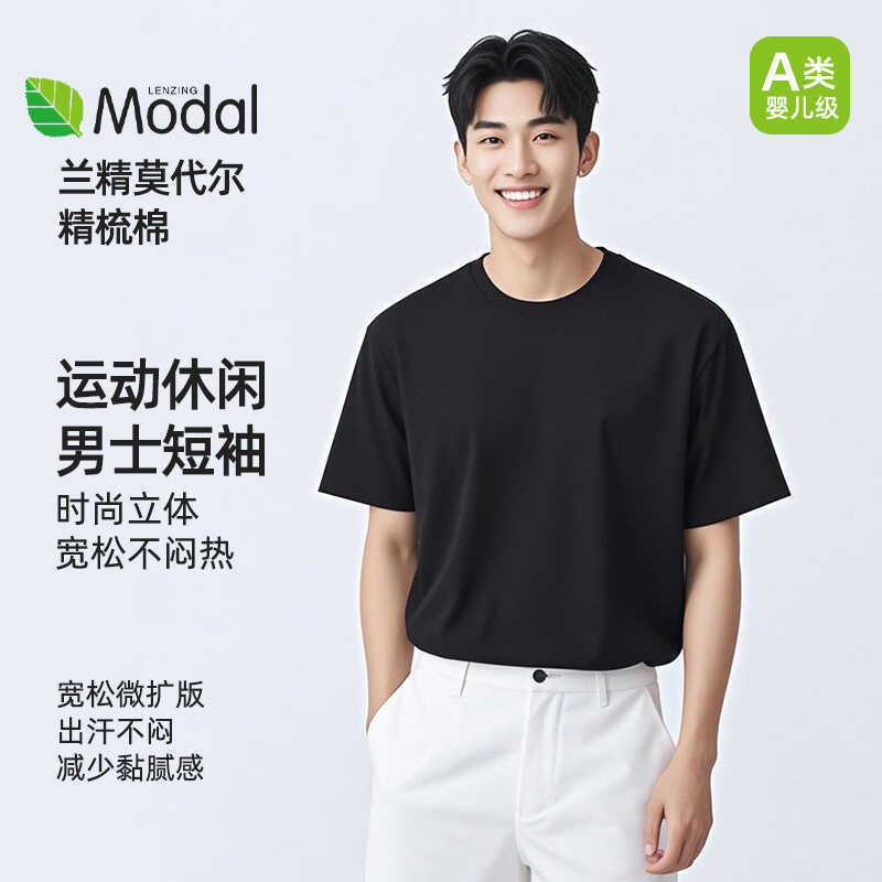 Modal Lenzing Cotton Short-Sleeve T-Shirt For Men, Summer Thin Solid Color Half-Sleeve Shirt, High-E