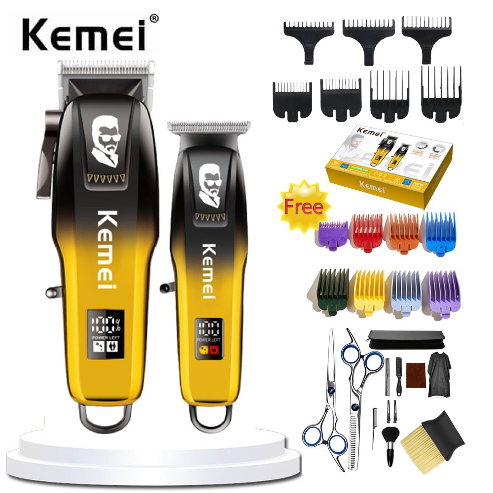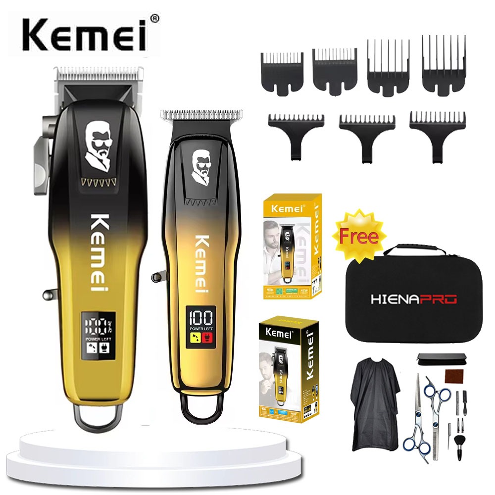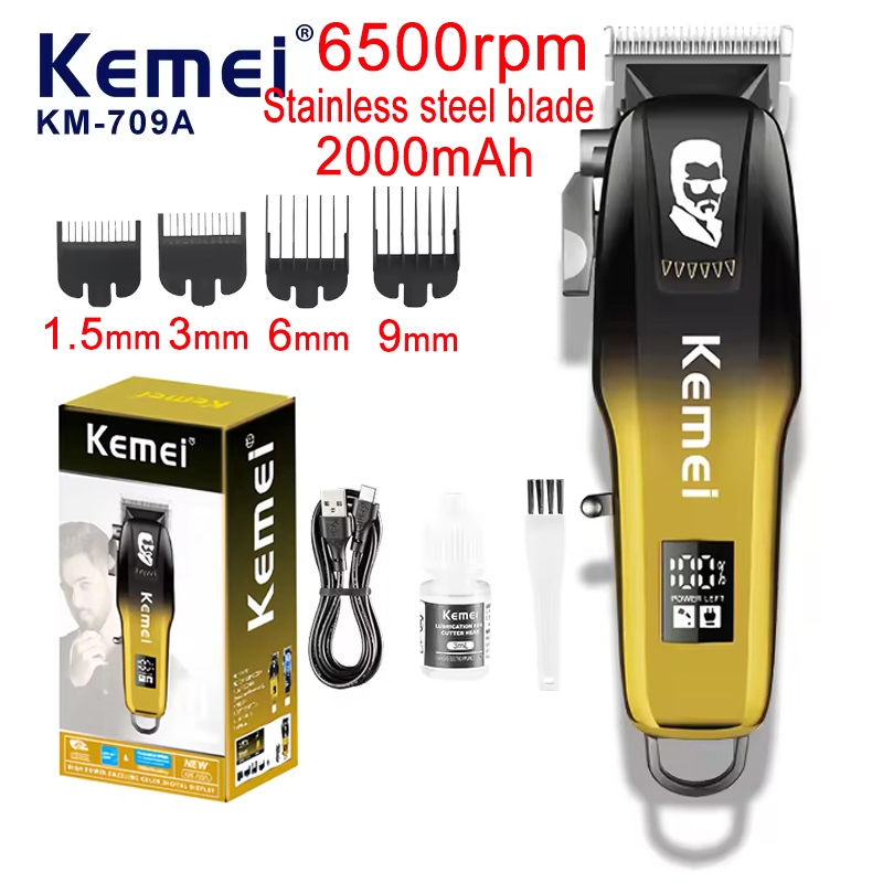 KEMEI KM-709A KEMEI KM-J03 Hair Clipper Kit Cordless Rechargeable Stainless Blades Hair Cut Razor for Men Stainless Blades Mens Trimmer