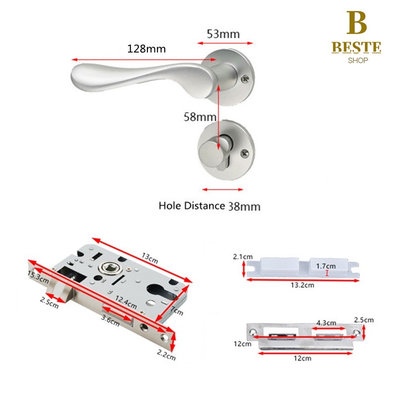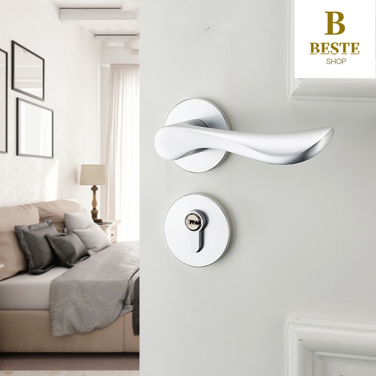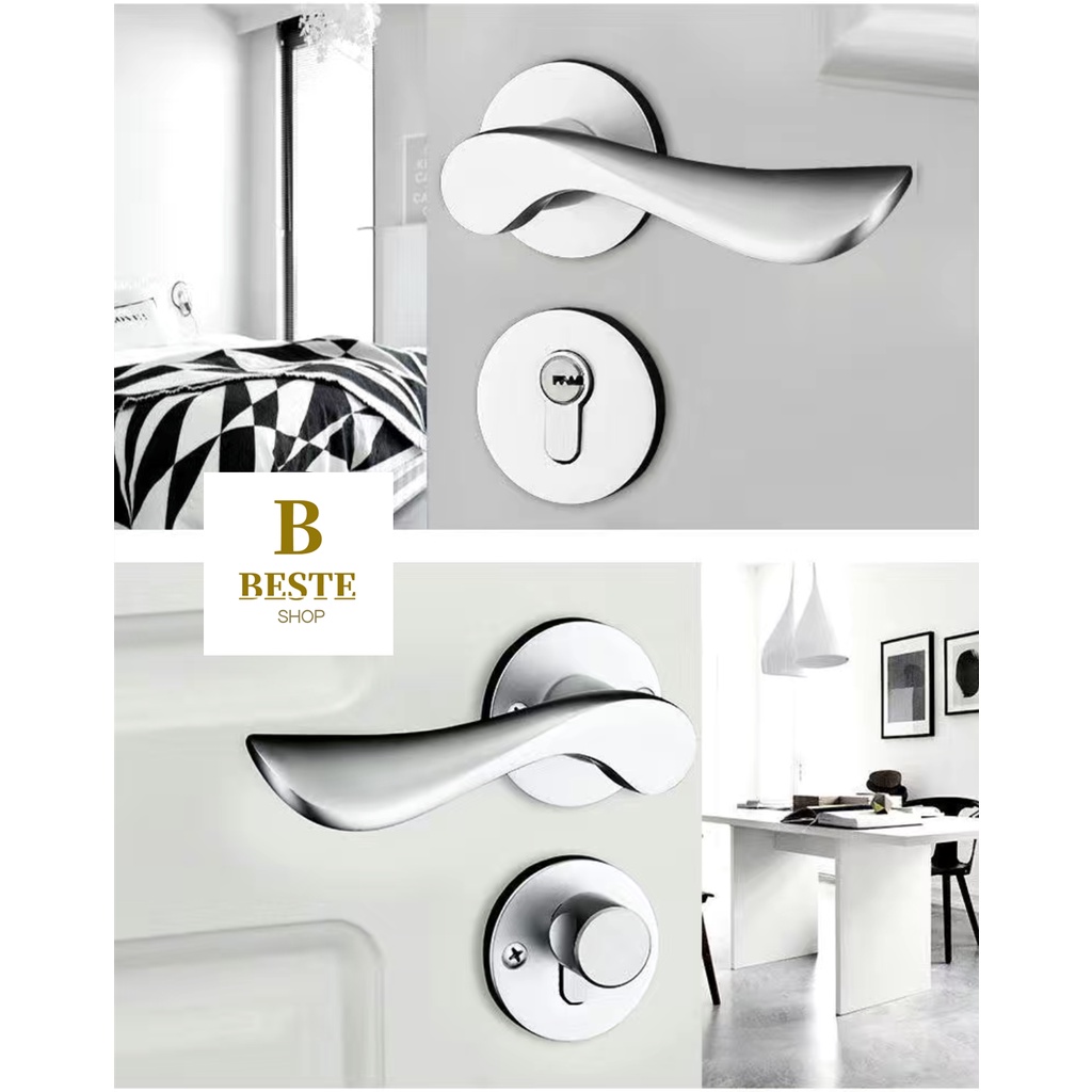 Bedroom Practical Split Smooth Door Lock Space Aluminum Door Lock Set Silver Security Lock Handle