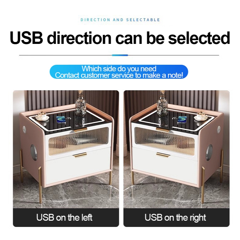 Bedside Table For Bedroom Wood Side Table With Drawer Smart Led Wireless Charge Bed Table Nightstand