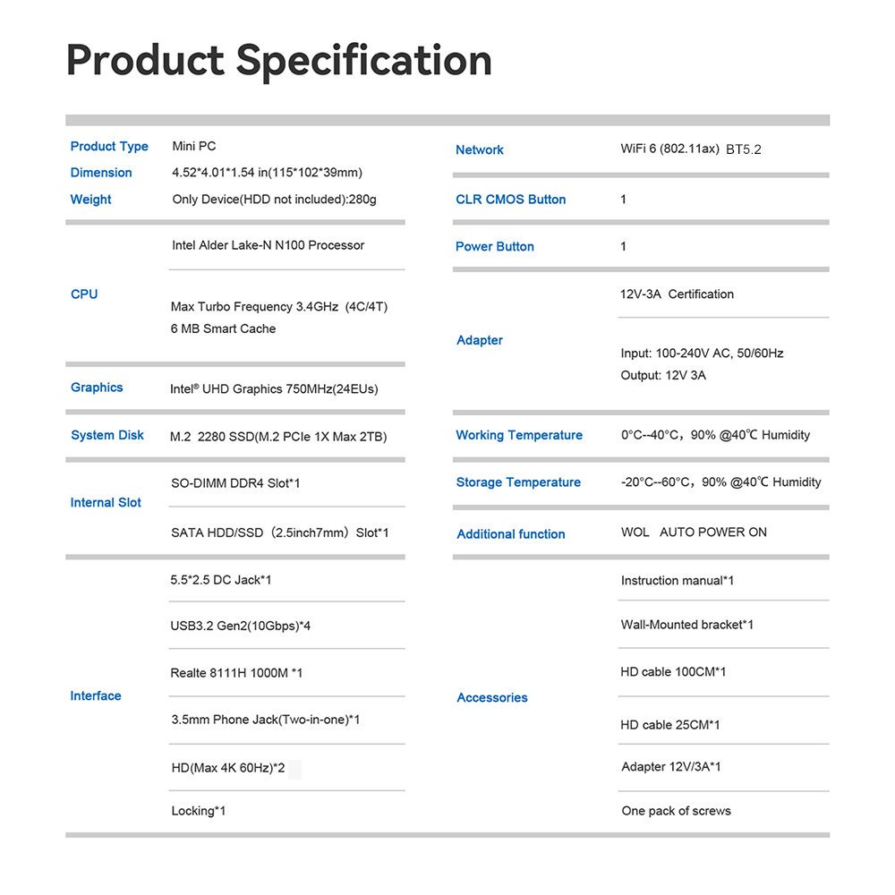Beelink MINI S12 Pro/S13 Windows 11 Intel 12th Gen N100/N150 Mini PC DDR4 RAM NVME SSD 3.4GHz Wifi 6 Bluetooth 5.2 RJ45 Gaming Office Mini PC