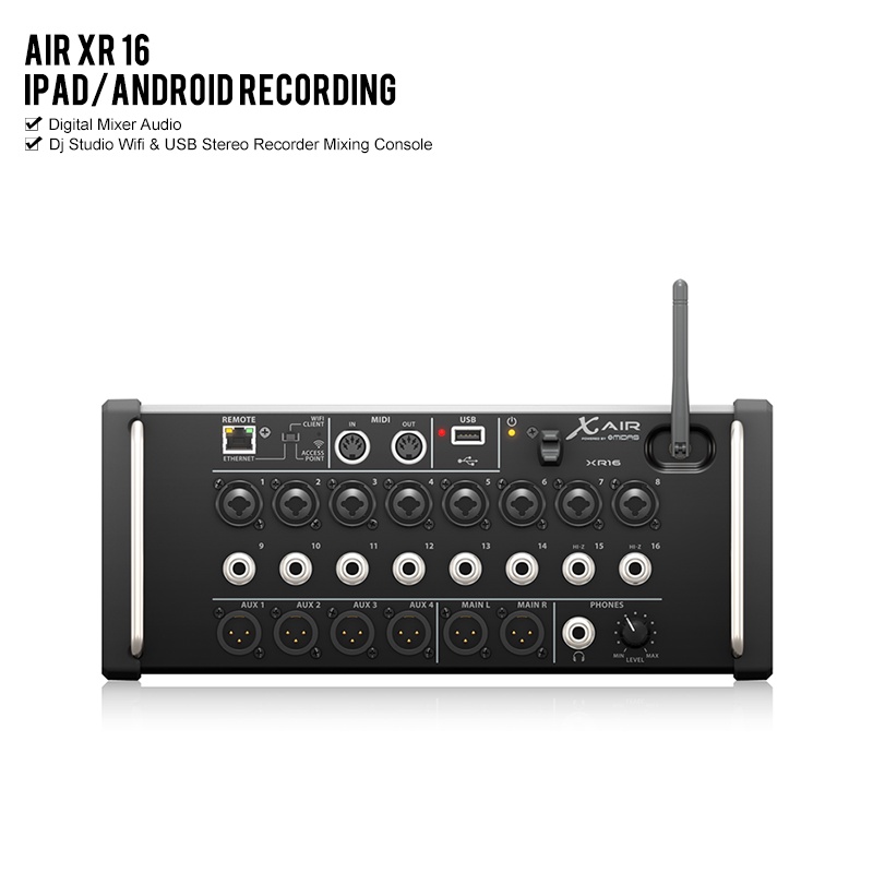 Behringer X AIR XR16 16-Input Digital Mixer for phone Tablets with 8 Programmable Midas Preamps, 8 Line Inputs, Integrated Wifi Module and USB Stereo Recorder
