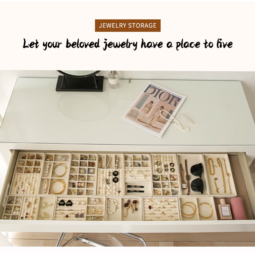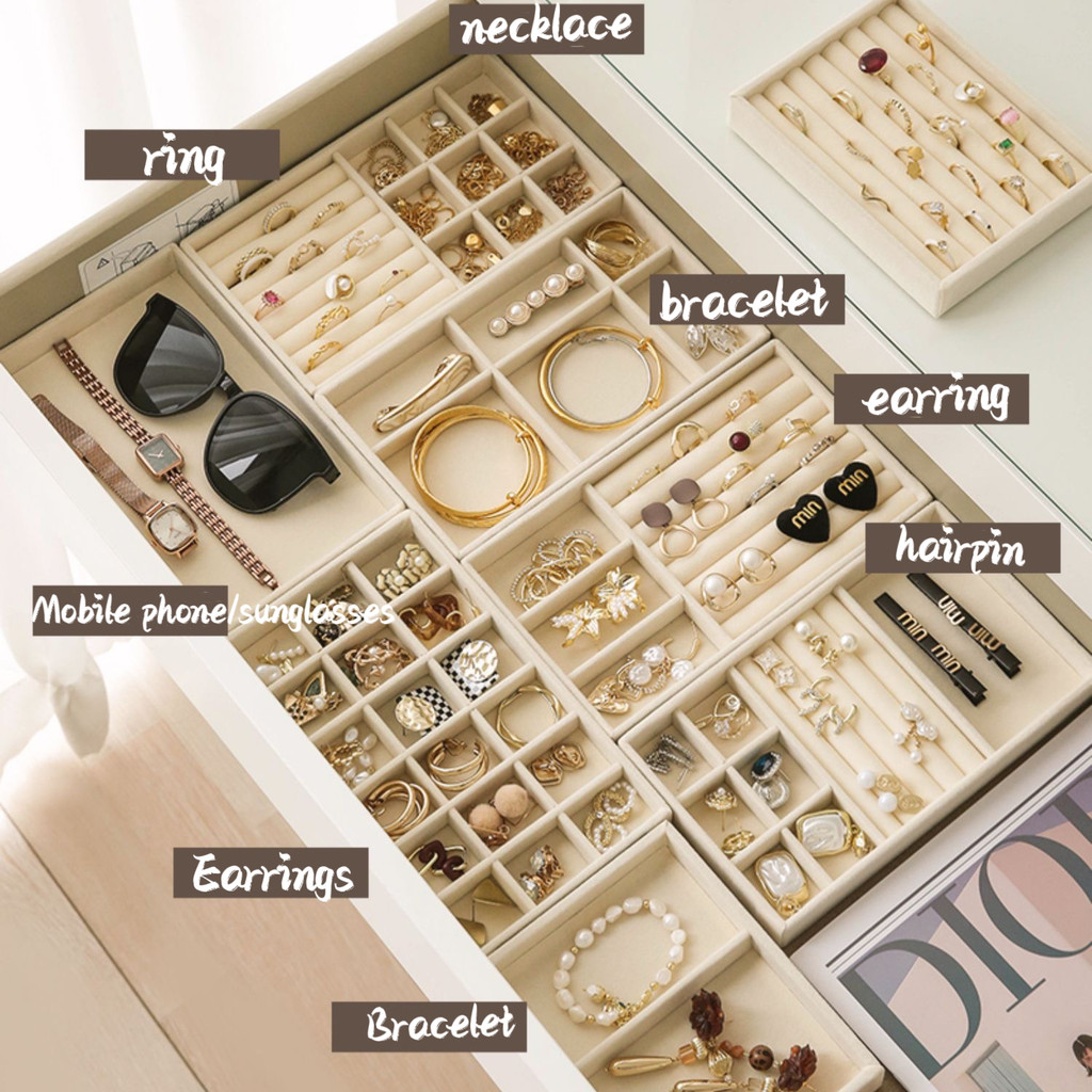 Beige Jewellery Storage Tray Display Jewellery Holder Stand Bracelet Necklace Ring Storage Box Showcase Drawer Jewellery Organizer