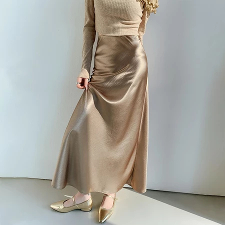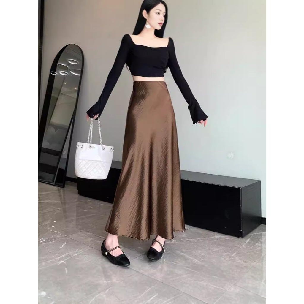 Belia Korean Casual A-line Satin Palda Mermaid Wrap Long Skirt for Woman Highwaist