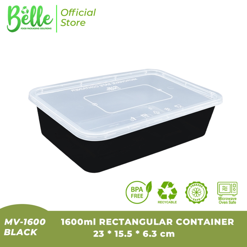 Belle New RE-1600 Microwavable Container 1600ml Rectangular Series Available in 5pcs/Pack
