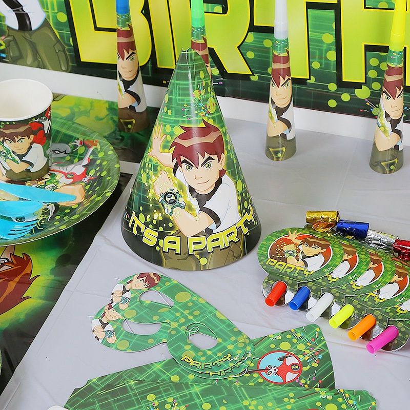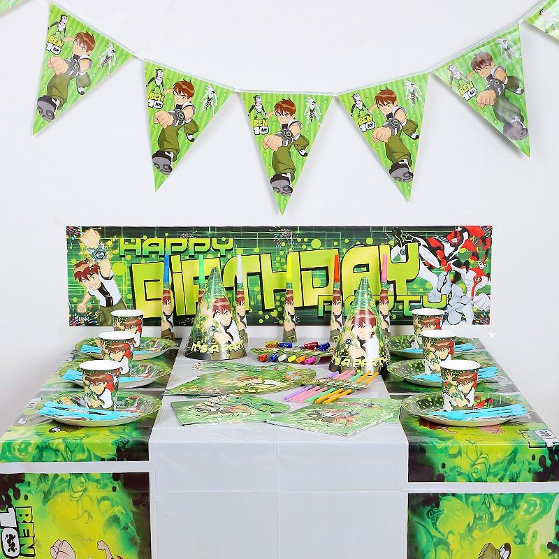Ben10 Theme Happy Birthday Party Decorations Balloons Party Hats Candy Box Banderitas Poster Banner