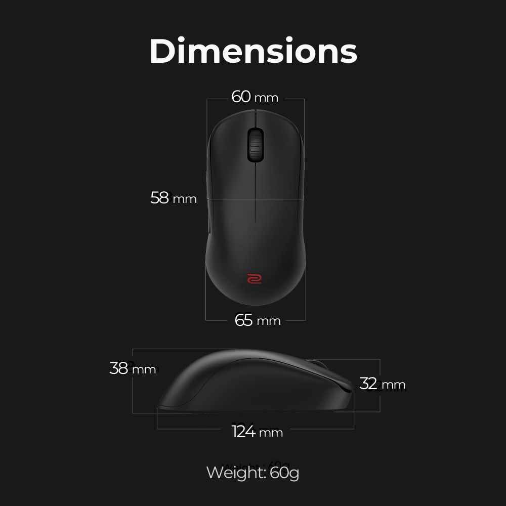BenQ ZOWIE U2 Wireless Gaming Mouse | Esports, Sport Science | Enhanced Receiver | 60g Lightweight