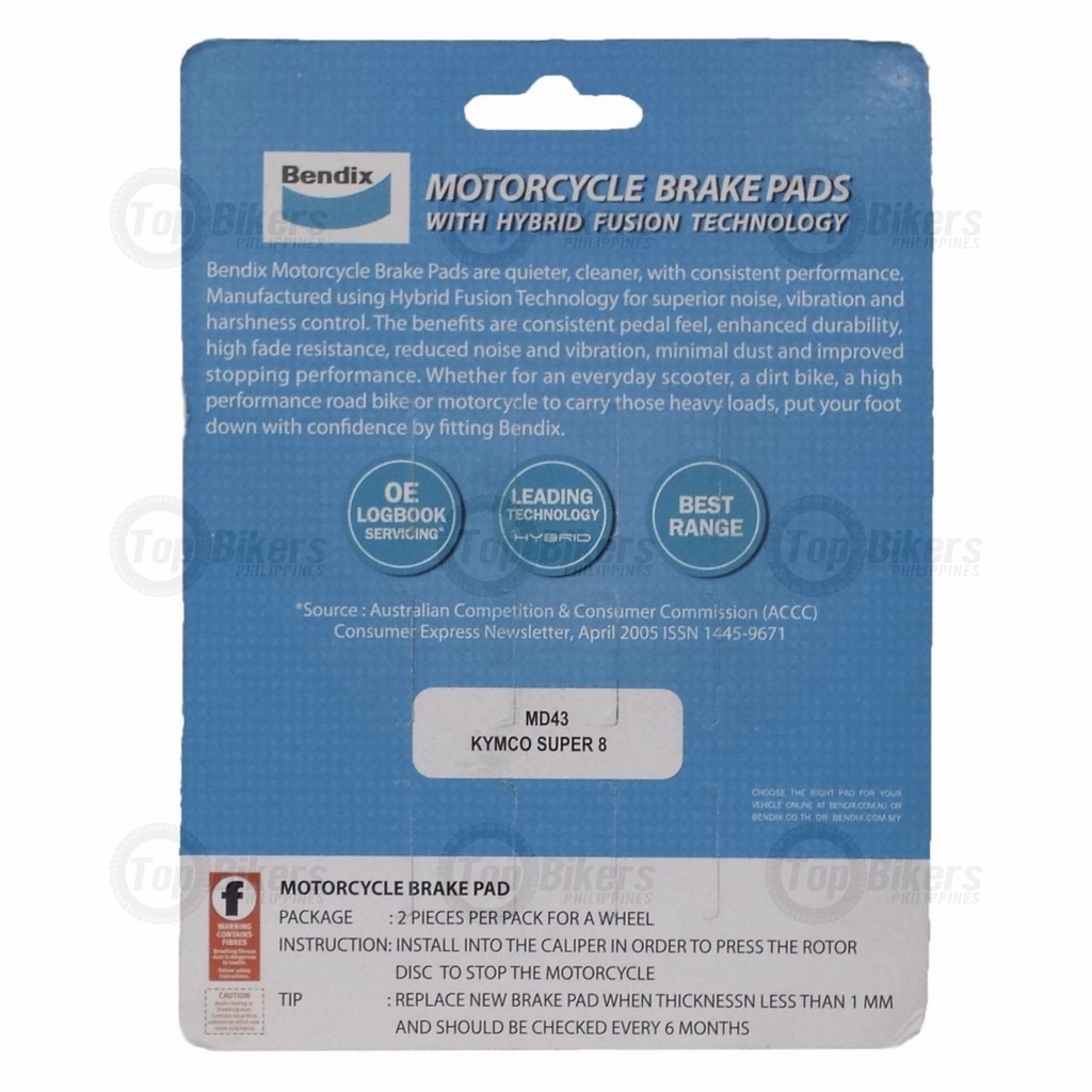Bendix Brake Pad( MD43)Kymco Super 8, SYM Joyride