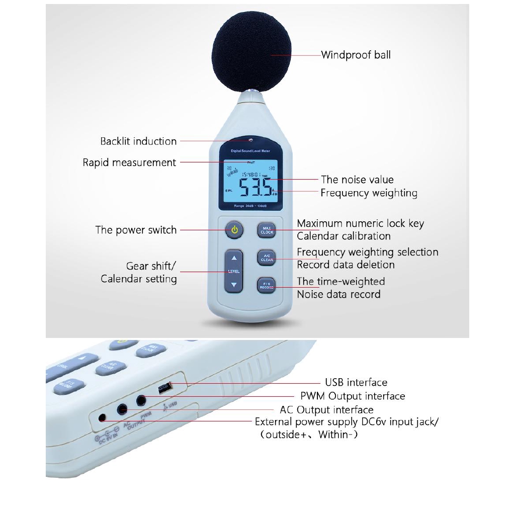 Benetech GM1356 Digital Sound Decibel Meter with Data Logger | JG Superstore