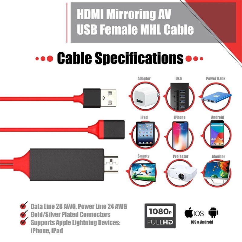 Benosem 3 IN 1 HDTV Cable Universal Mirascreen HDMI Adapter For Android IP Phone USB Type-C to HDMI Cable
