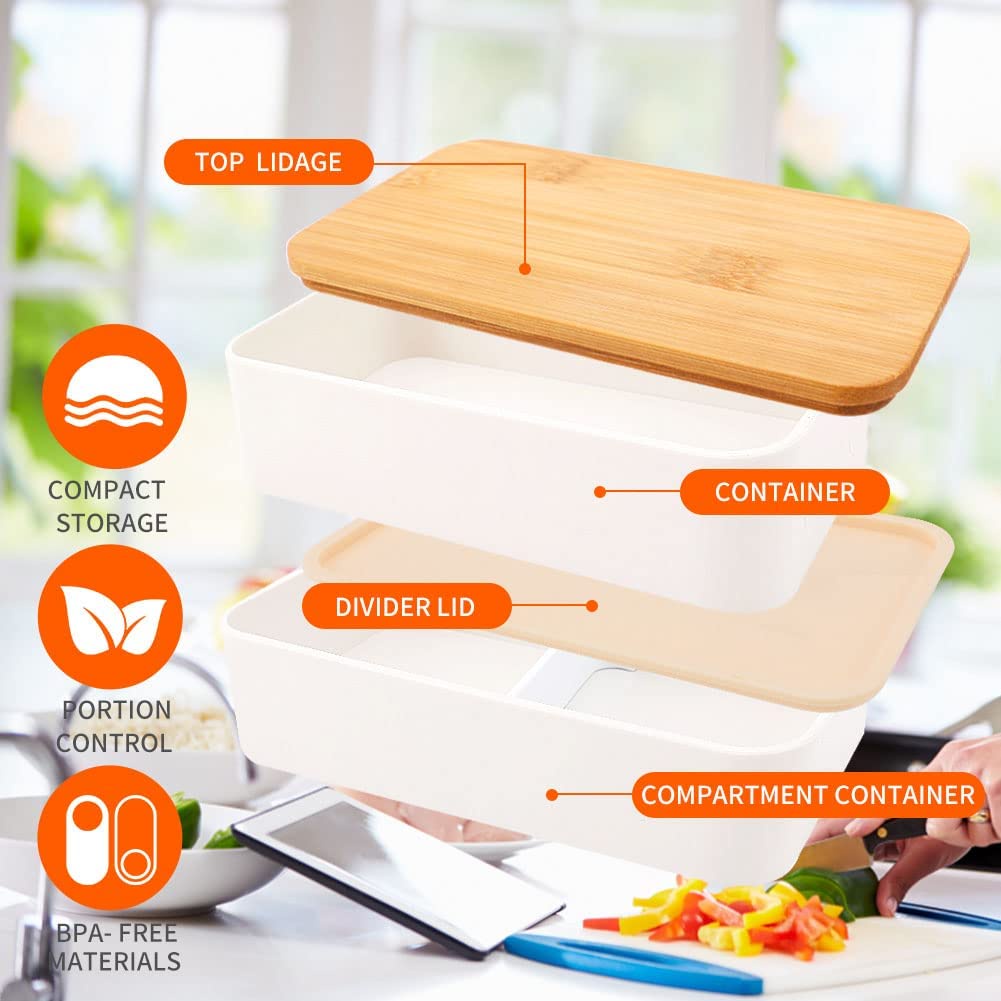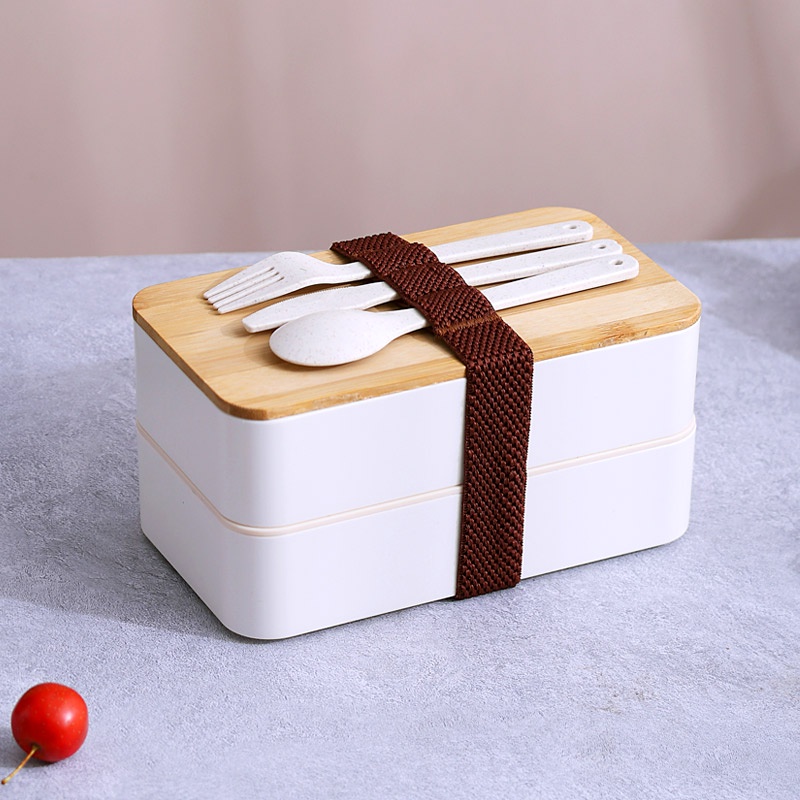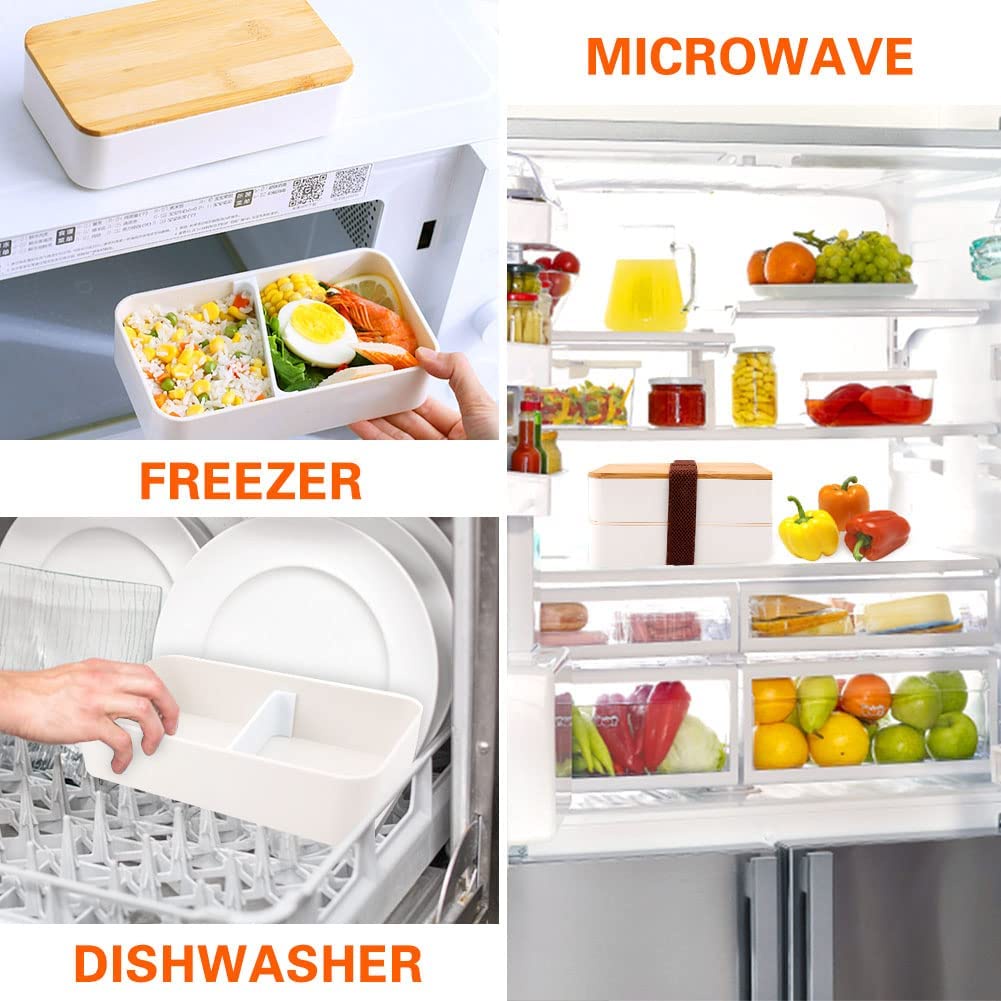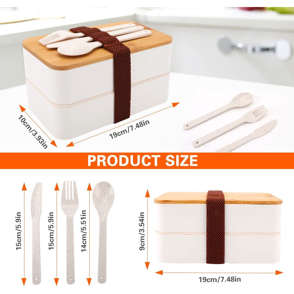 Bento Box 2 Tiers Lunch Box Food Containers Bento Lunch Box with Divider, Cutlery Set