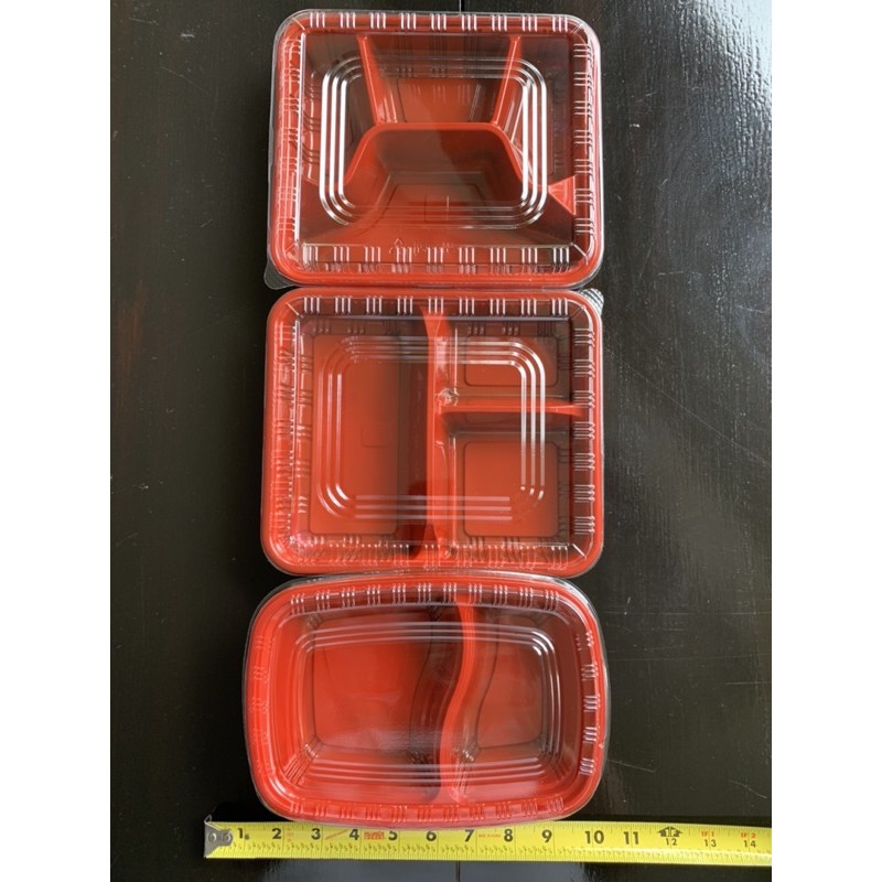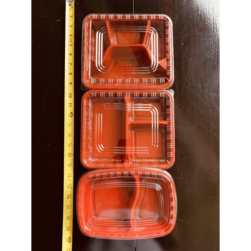 Bento Box Red 2,3,4 Division With Lids 50pcs/pack