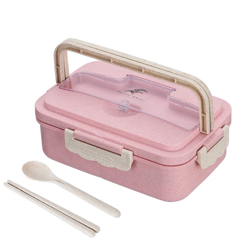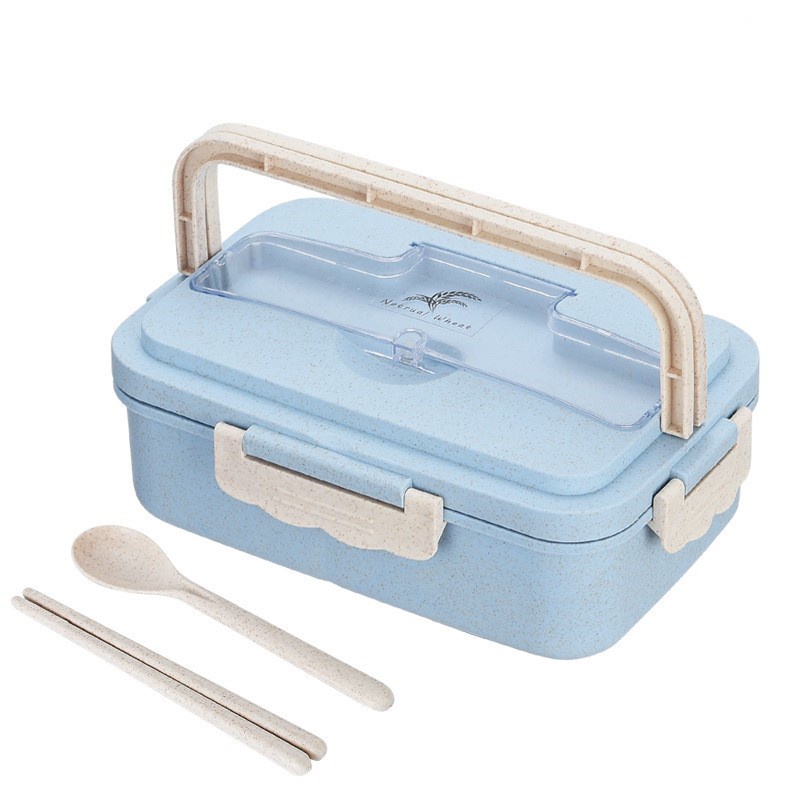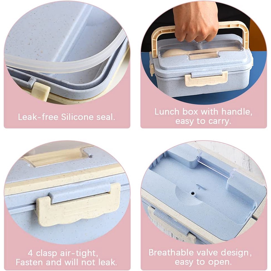 Bento Box and Lunch Box With Spoon and Chopsticks Microwaveable Wheat Straw Lunch Containers