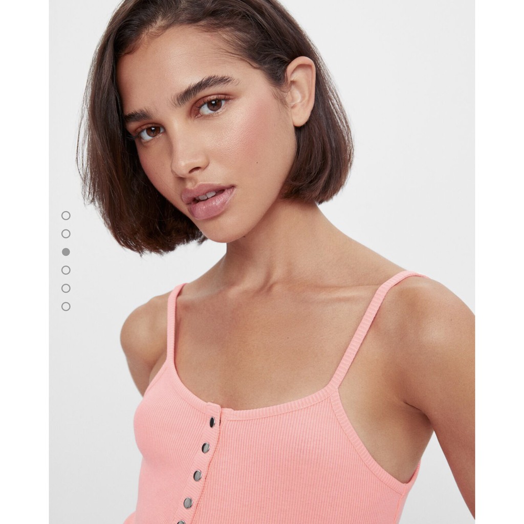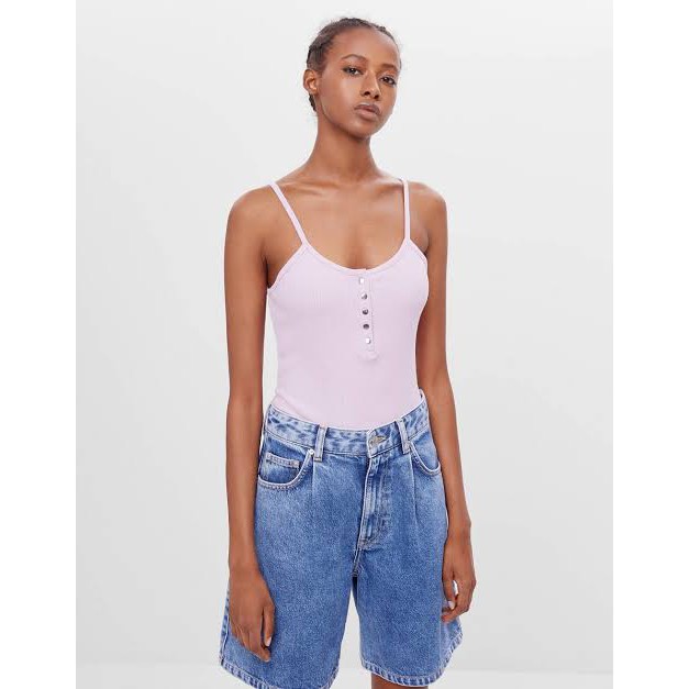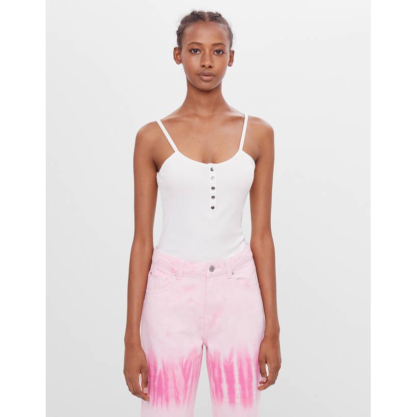 Bershka Ribbed Strappy Bodysuit with Buttons | Authentic Overruns