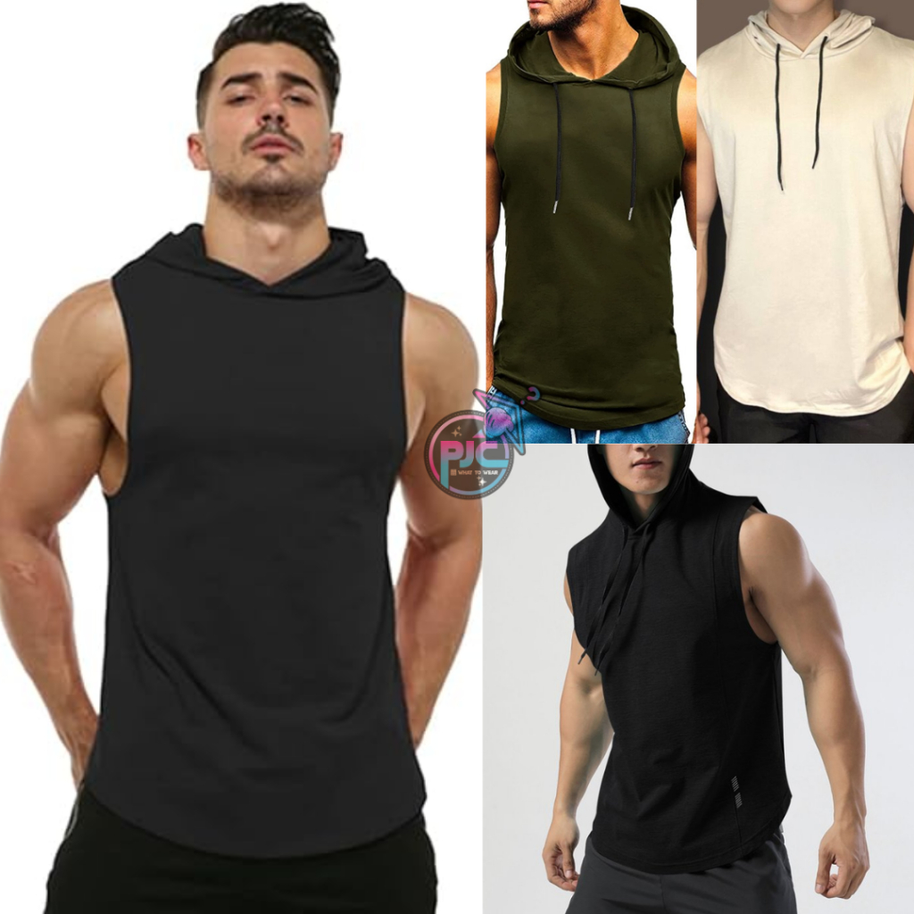 Best Seller Product | Muscle Tees with Hoodie Plain Unisex High quality ( GYM Outfit , Running Etc )
