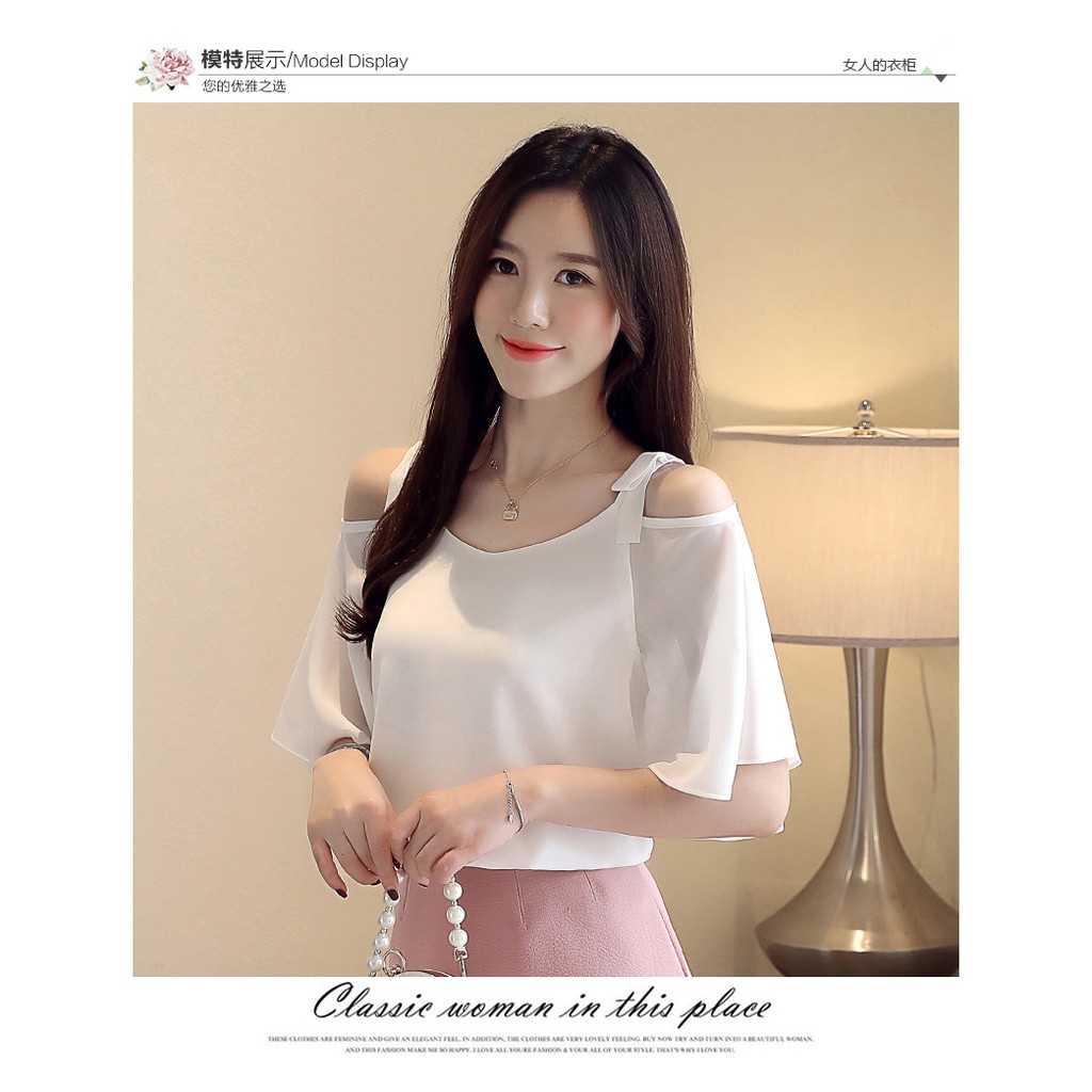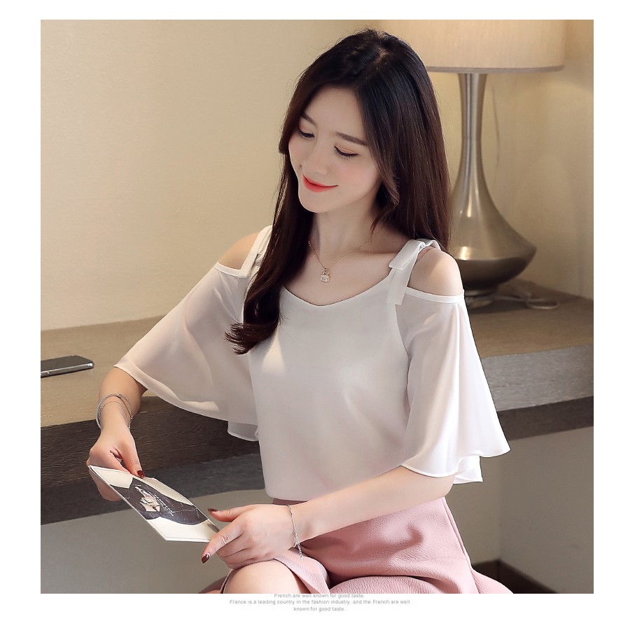 Bestlook Casual Women Summer Blouse Korean Style Short Sleeve Off Shoulder Shirt Chiffon