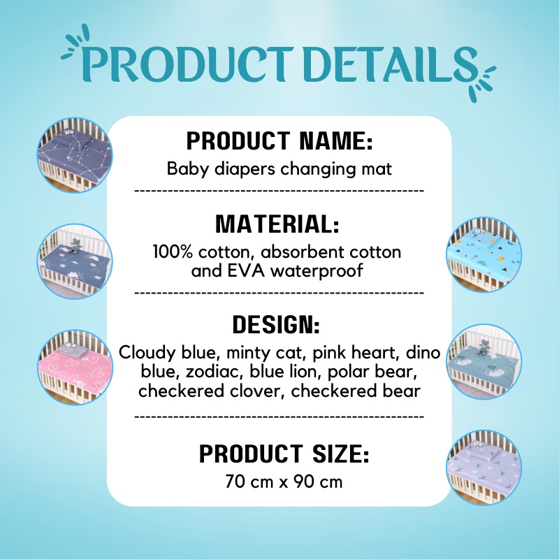 BESTMOMMY Baby Waterproof Diaper Changing Mat Pad Cotton Material Washable Reusable Mattress 90cm