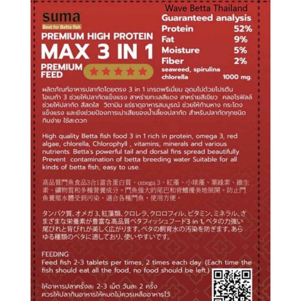 SUMA Max Premium High Protein 3 In 1 Betta Fish Food 2 Sizes 3g. And 50g.