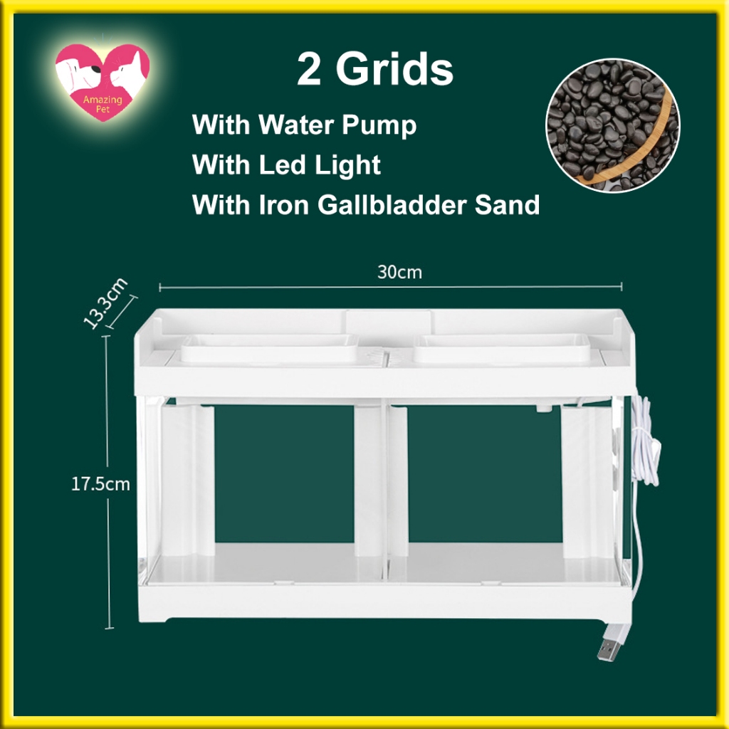 Betta Fish Tank Mini Fish Aquarium Desktop Integrated Fish Tank 2/4 grids with pump & led light