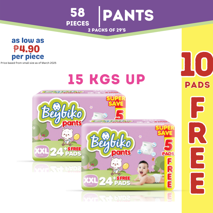 Beybiko Diaper Pants XXL (15KGS & UP) 58 PCS - 24 + 5 x 2 packs