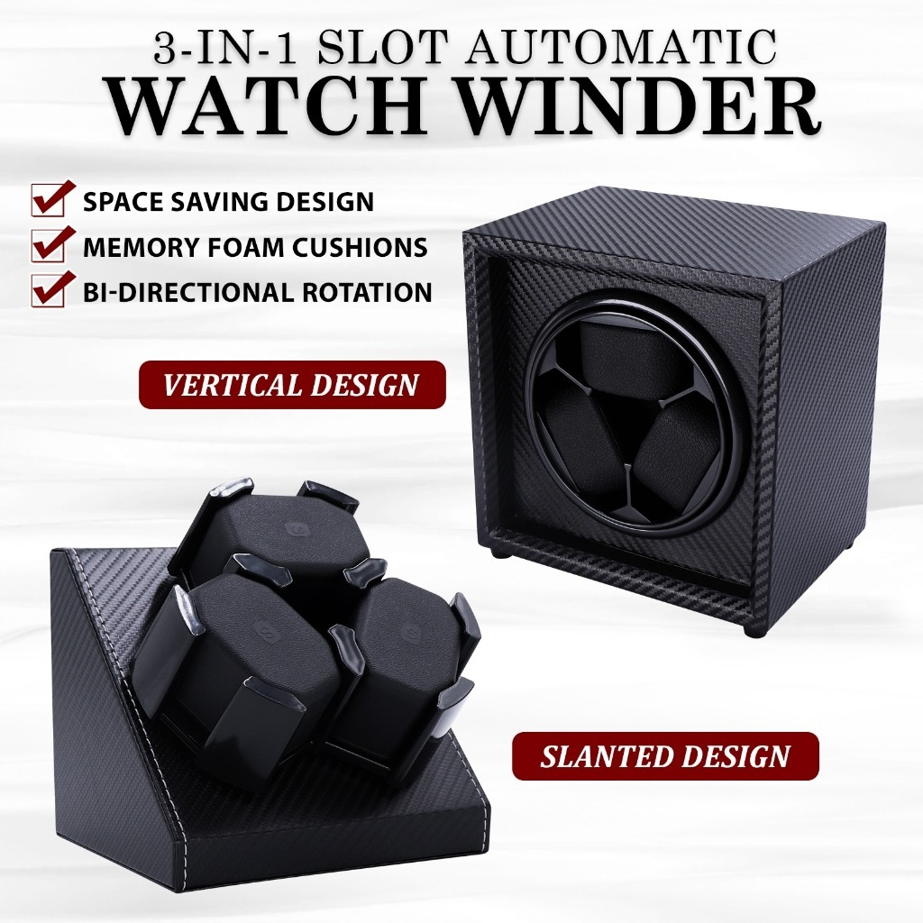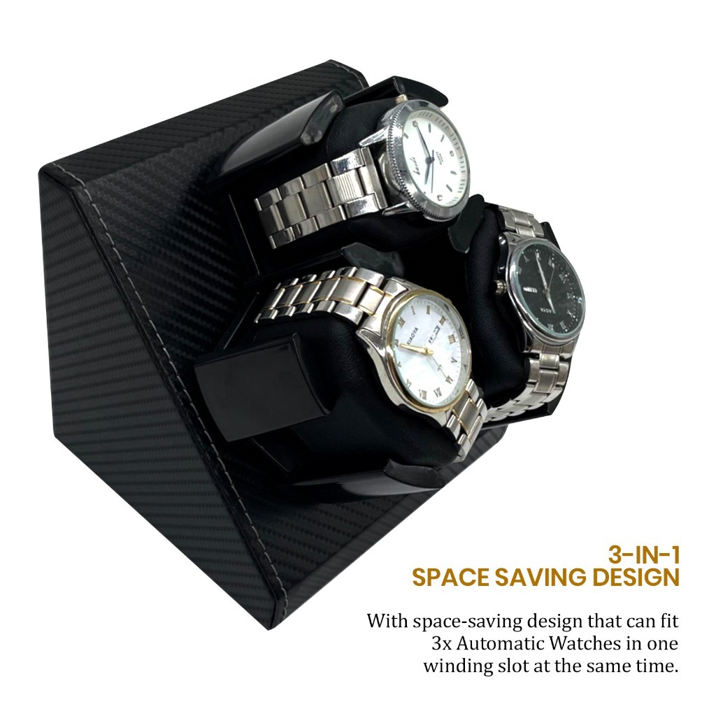 Bi-directional Rotation 3 Slots in 1 Automatic Rotation Watch Storage Display - CARBON FIBER