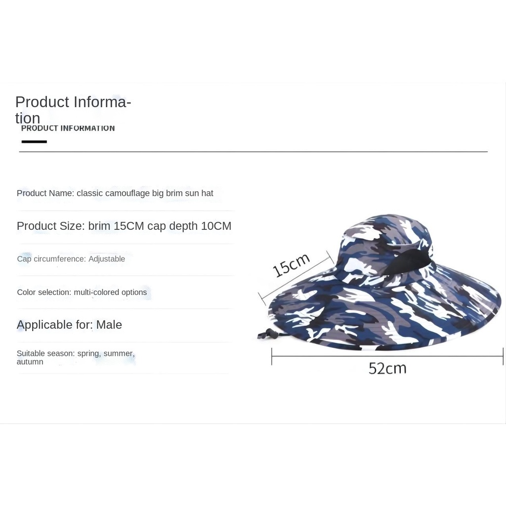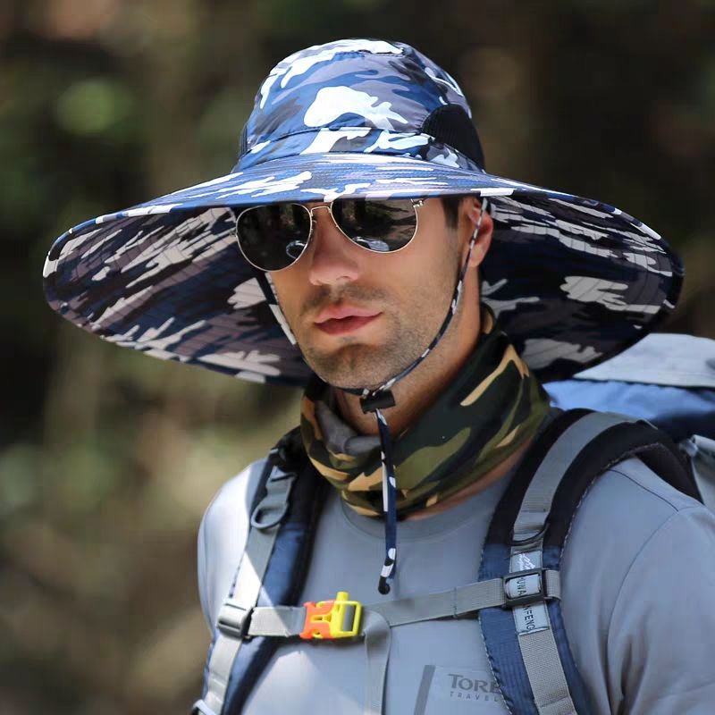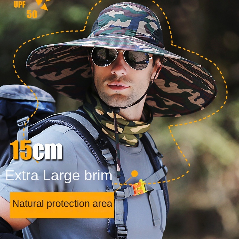 Big Brim Bucket Hat Camouflage Cap Men'S Fishing Cap Outdoor Mountaineering Cap Summer Sun Shade Cap