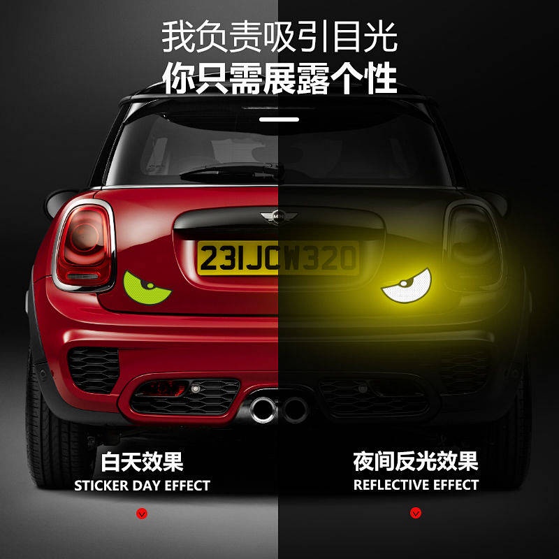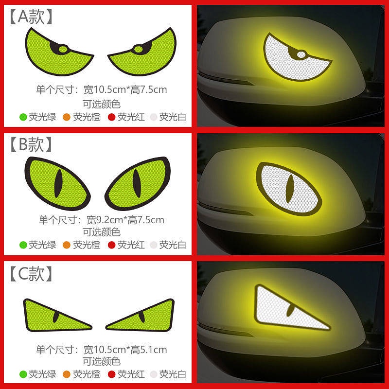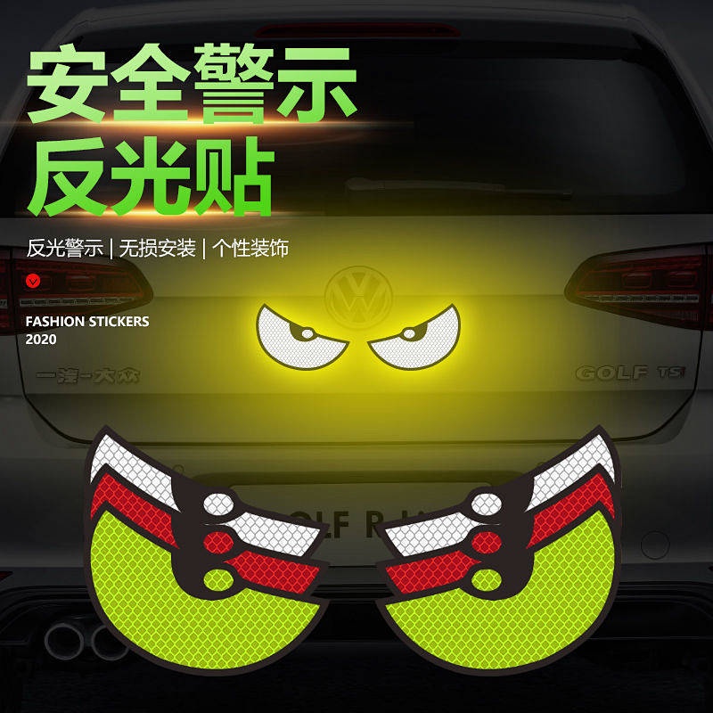 Big Eyes Cartoon Reflective Sticker Cool Safety Warning Scratch Hidden Sticker Creative Personalized Decoration Automobile Sticker car accessories AnsG