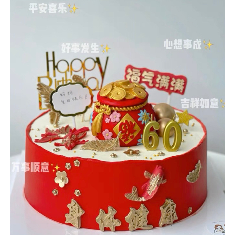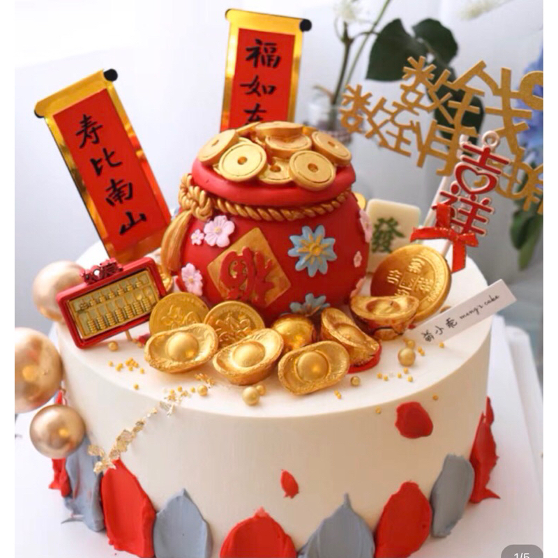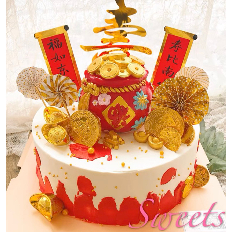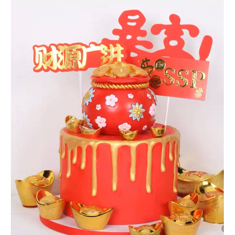 Big Premium Fu good fortune piggy bank money pot cake topper
