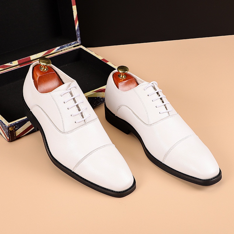 Big Size Elegant Cool Men Formal Shoes Business Smart Flat Office White Leather Shoes Handsome Derby Shoes
