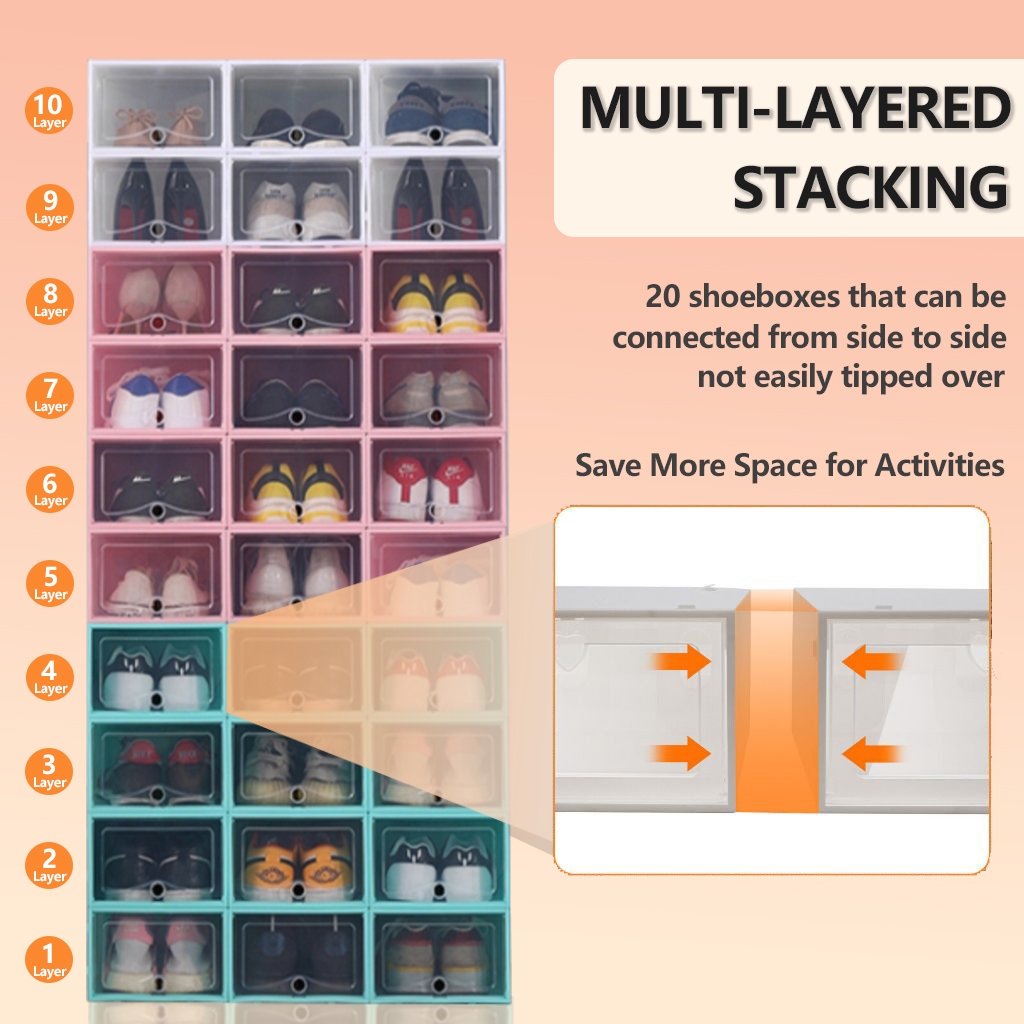 Big Size Hard Plastic Shoe box Storage Organizer Shoe box Transparent Shoe rack organizer with cover