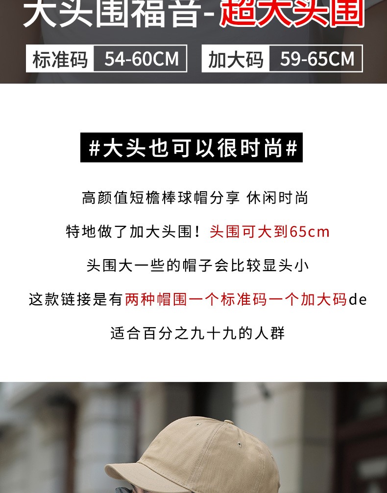 Big head hat short eaves short along the big size cap men's big face big summer trend to increase baseball cap
