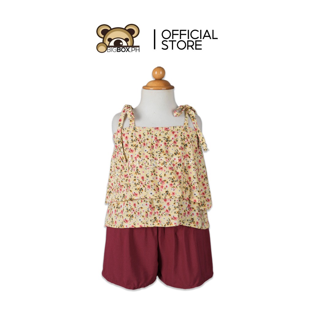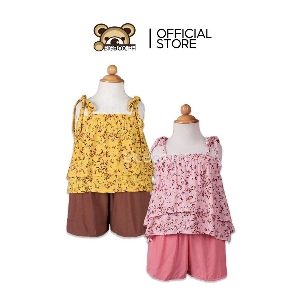 BigboxPH Kids Fashion Floral Adjustable Ribbon Strap Layered Top & Shorts Terno for Girls | OOTD