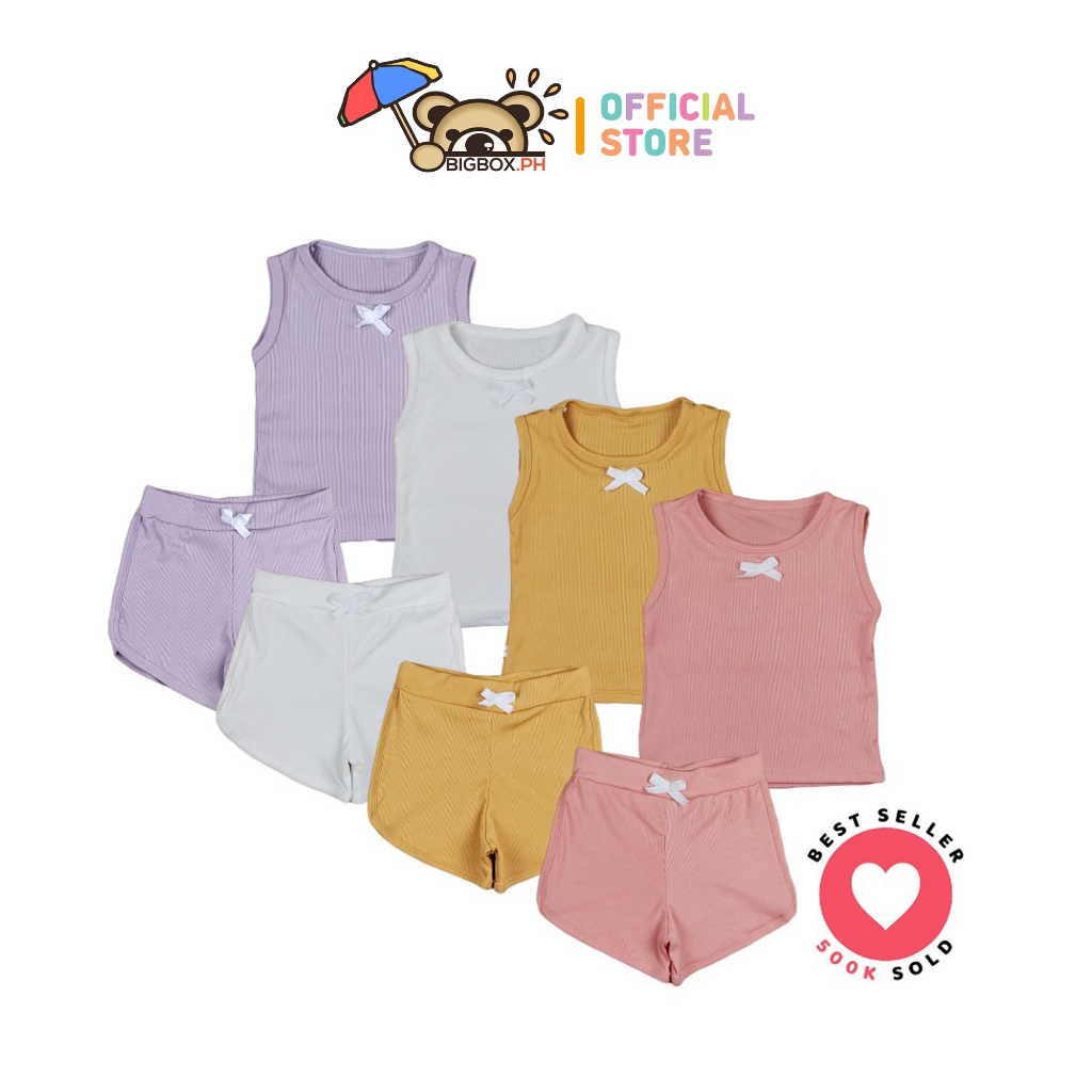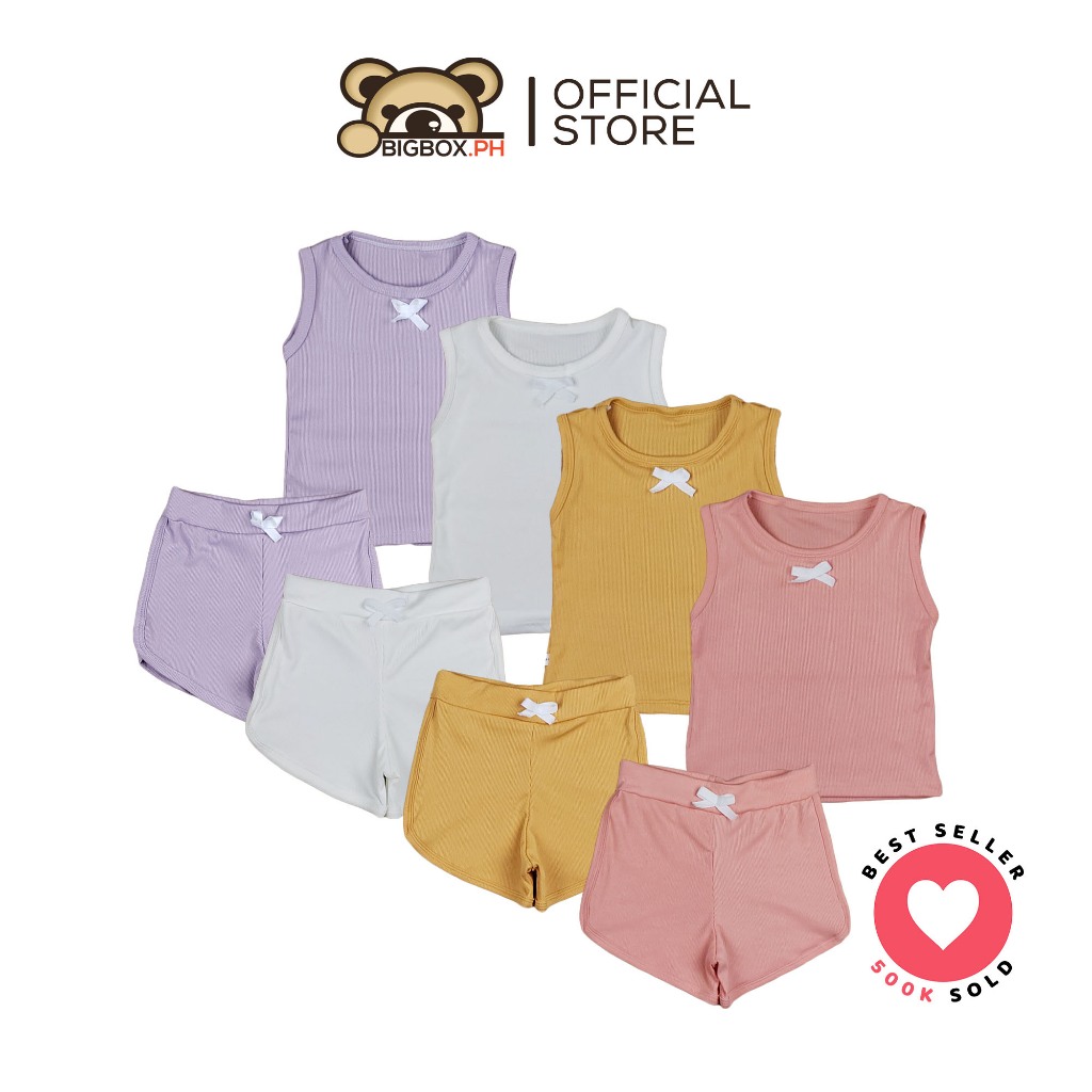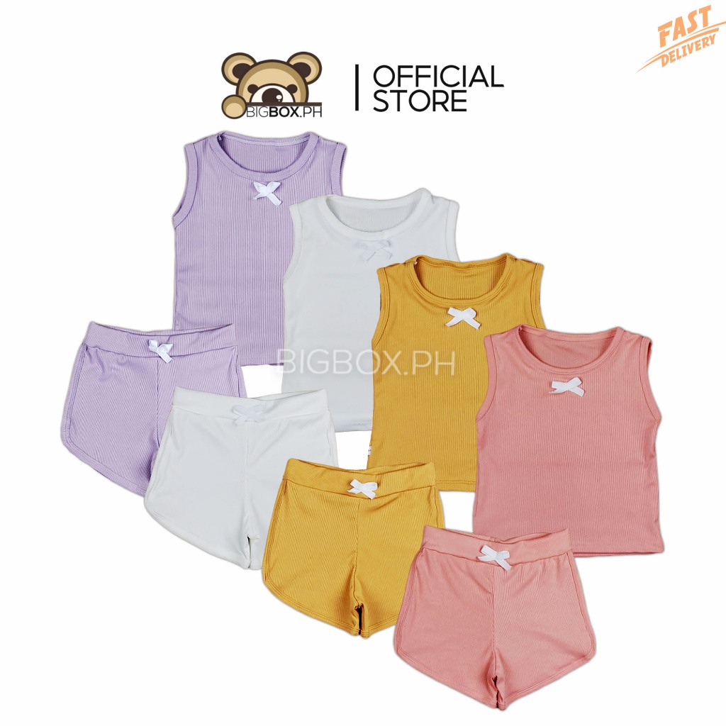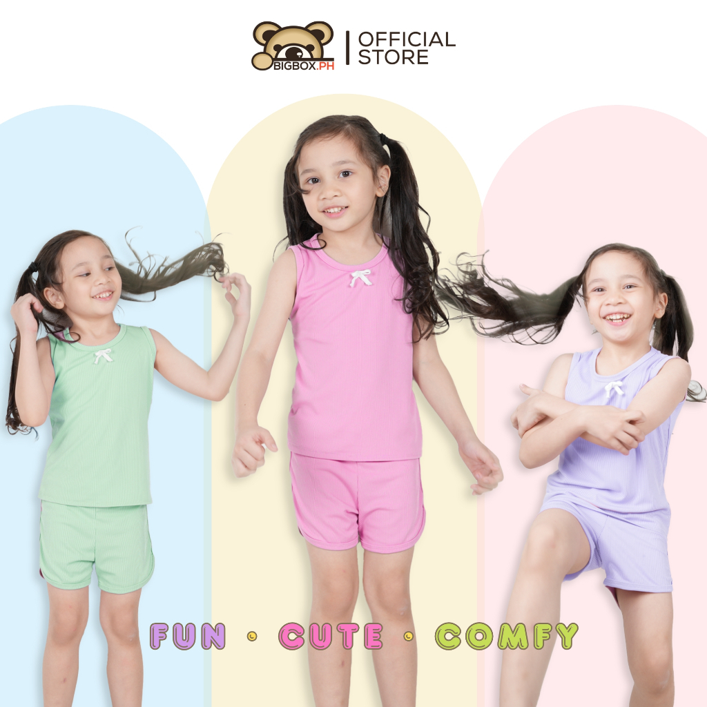BigboxPH Kids Ribbed Sando Shorts Terno for Kid Girl 1-12 Years Old | Cute Pambahay & Panglakad
