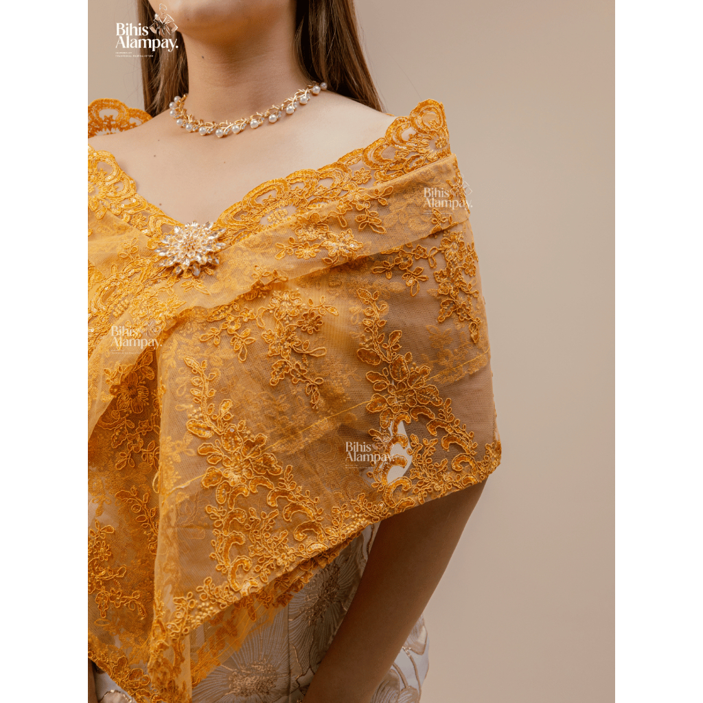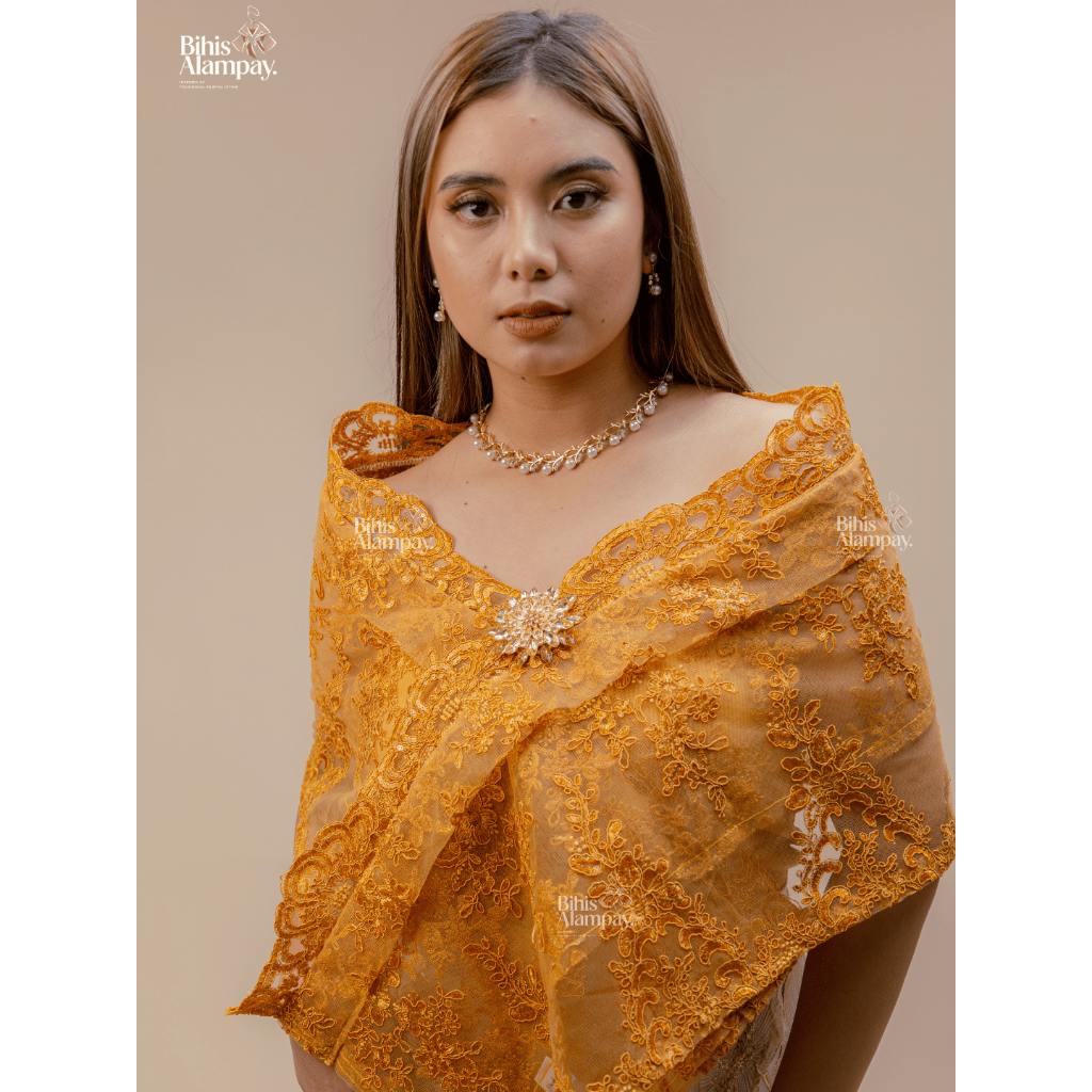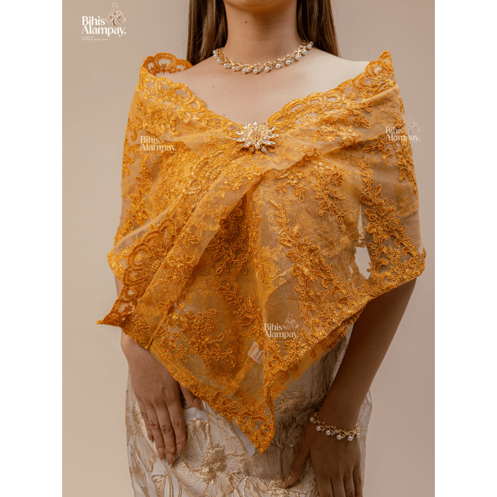 Bihis Alampay Classic Alampay – Ginto Lace | Filipiniana Lace Shawl with Free Tube & Brooch
