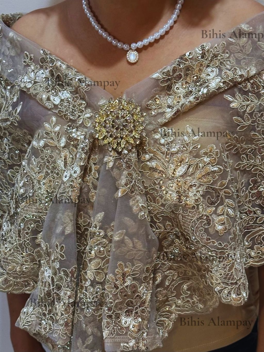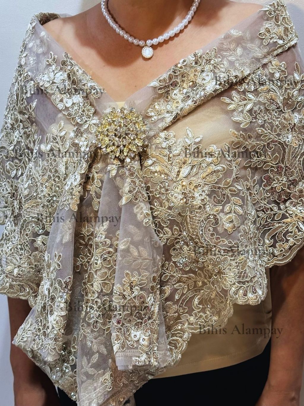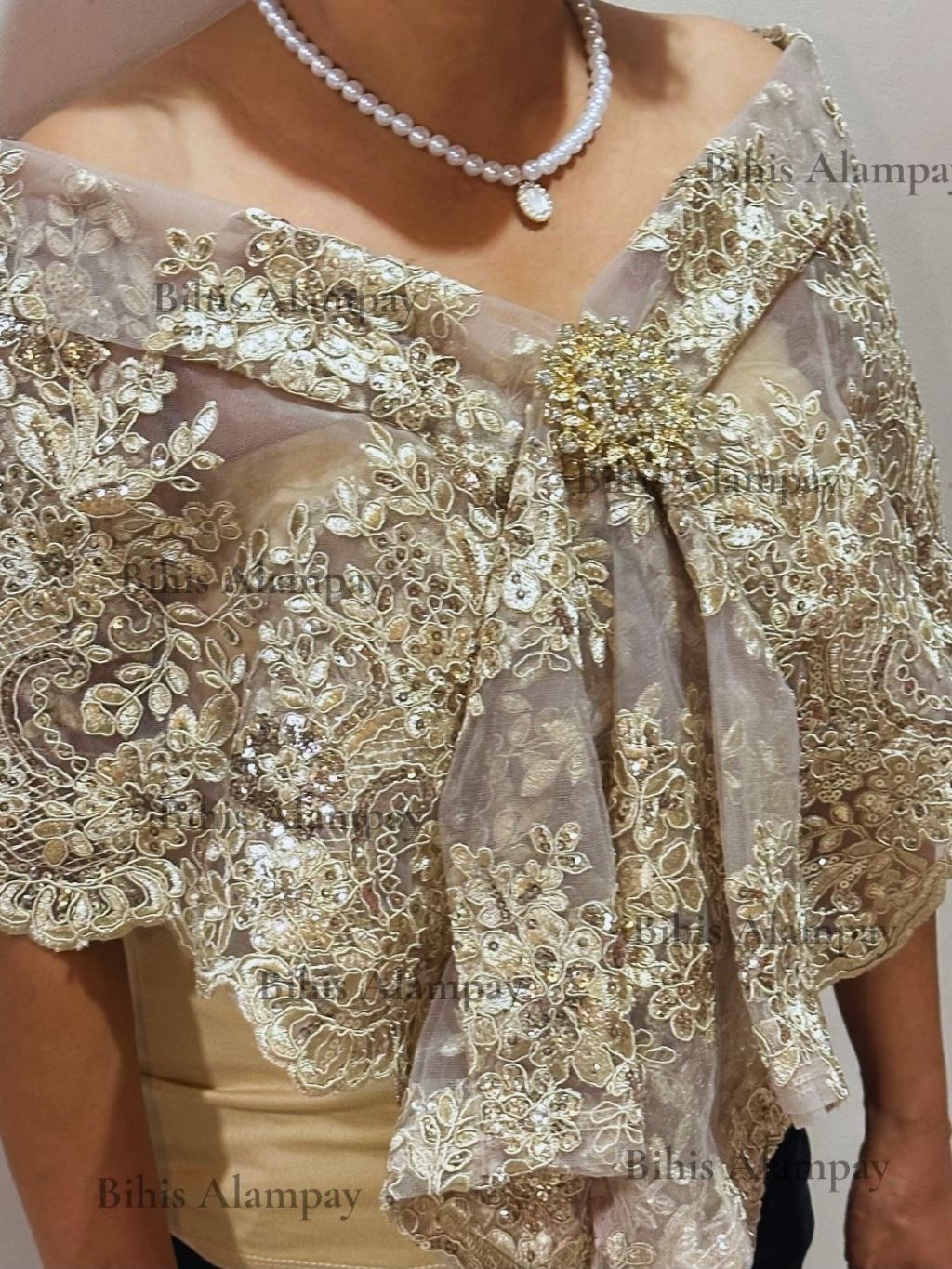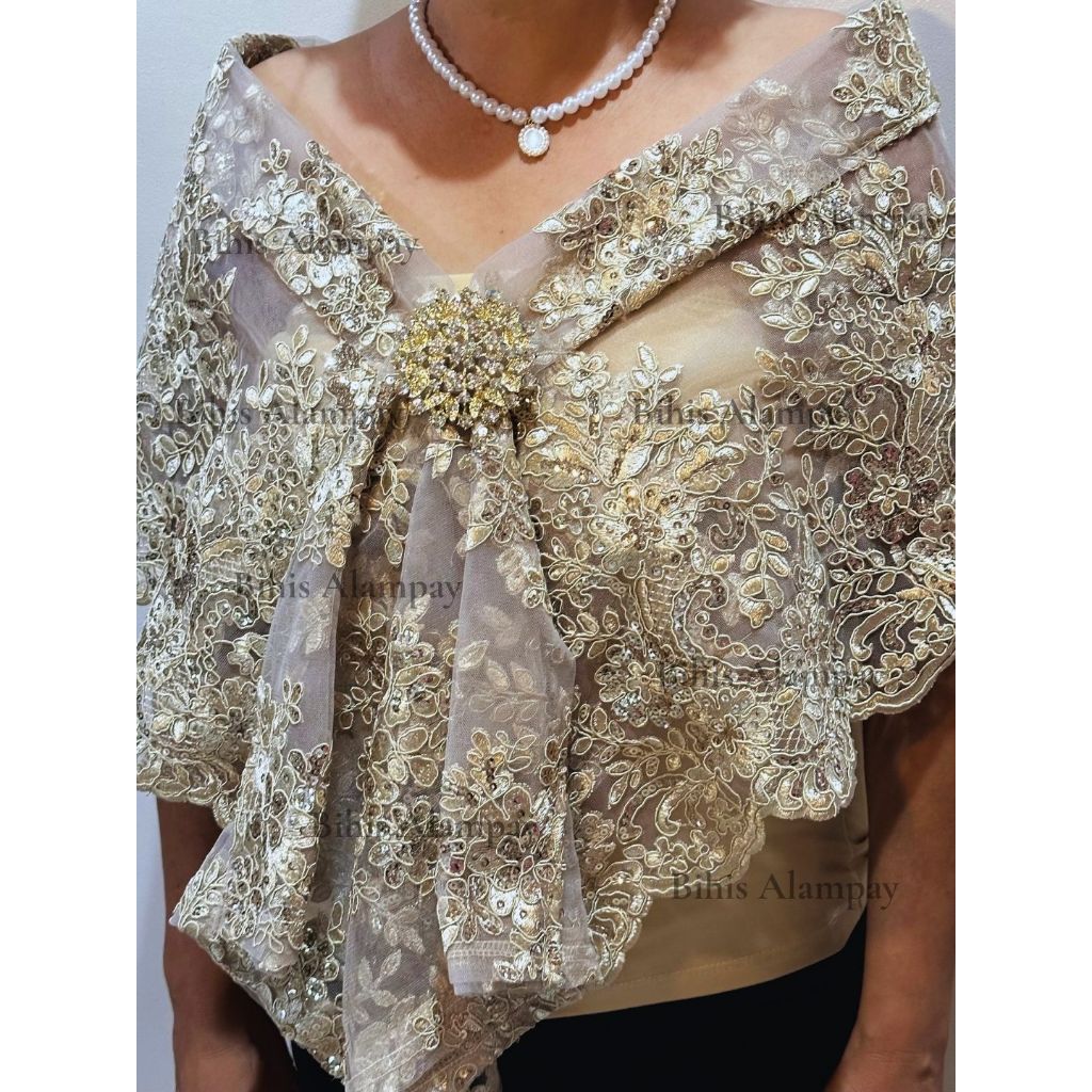 Bihis Alampay Limited Edition Dark Beige Elegant Filipino Shawl Scarf Formal Ethnic Wrap for Women