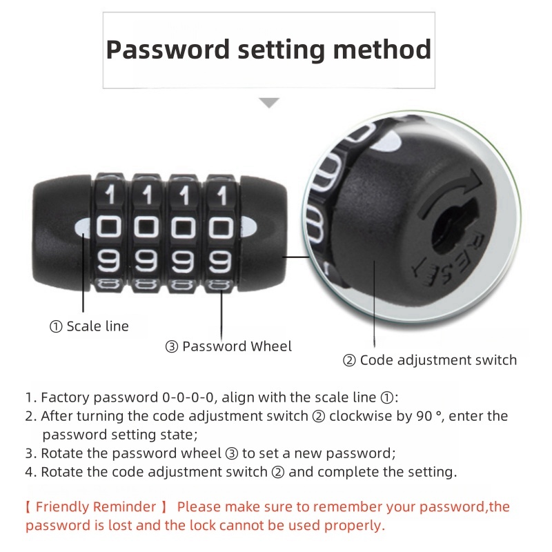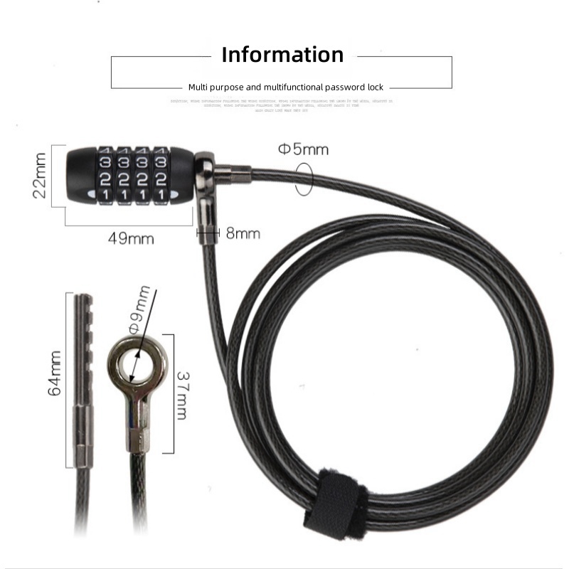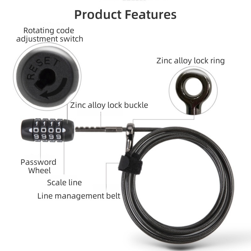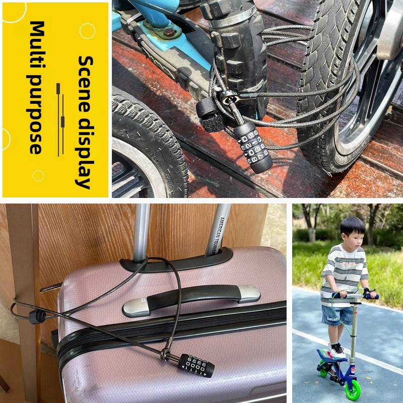 180cm Bike Lock Password Combination Lock 4 Digital Anti-theft Security Luggage Long Cable Code Lock