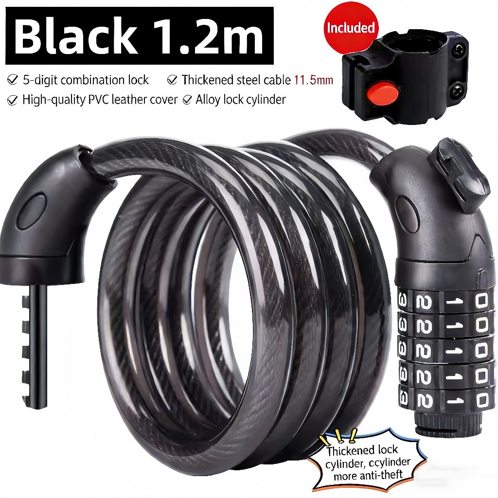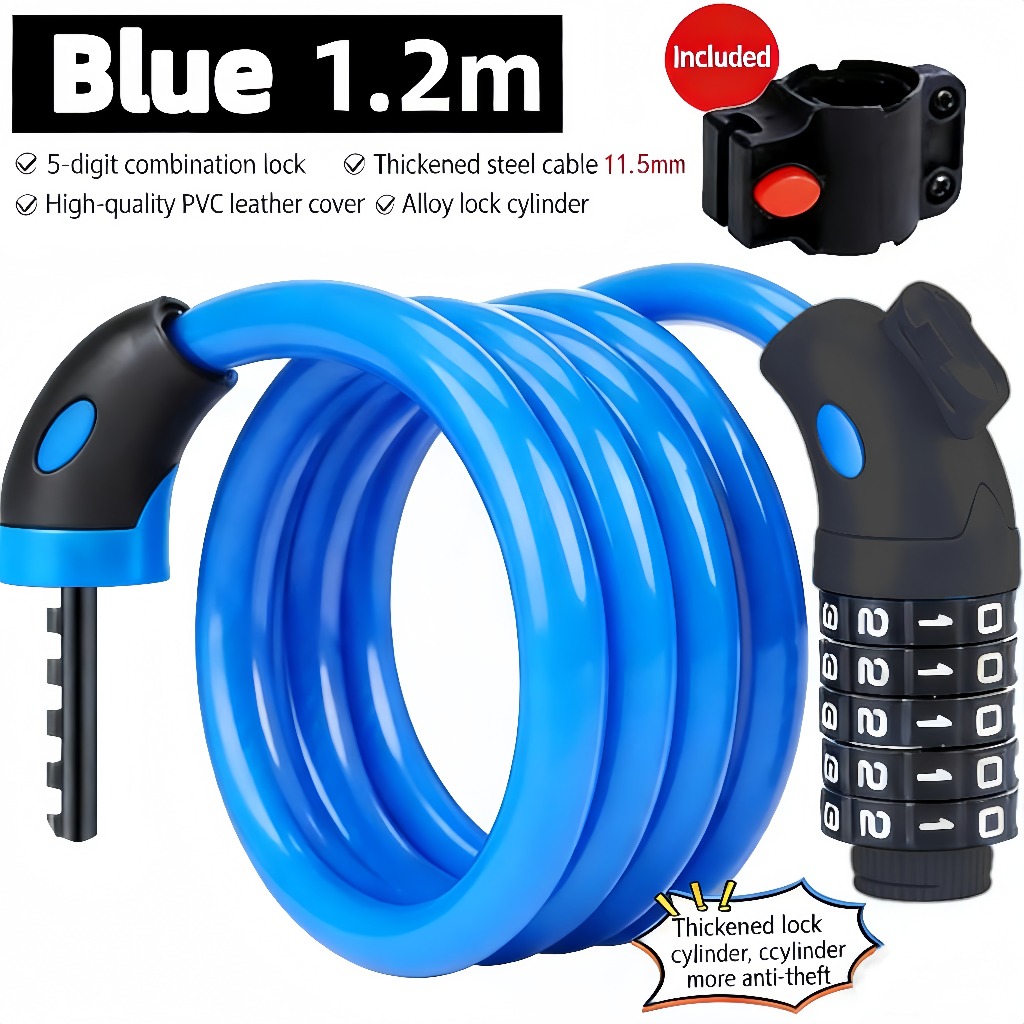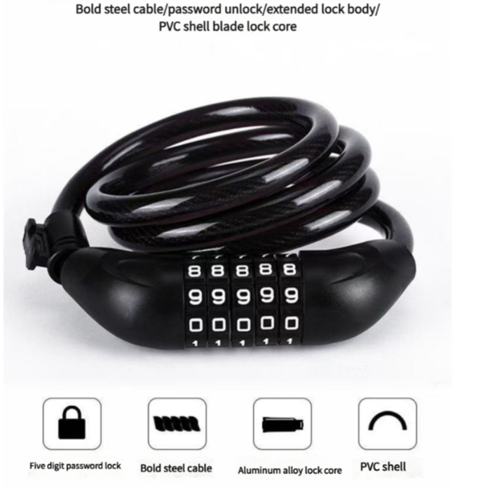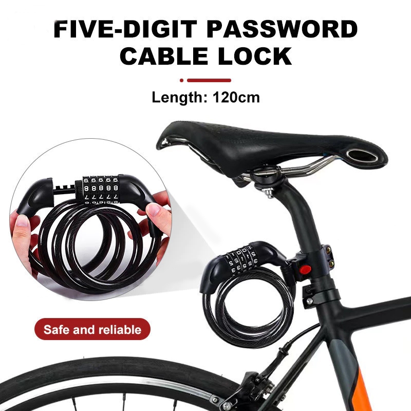 Bicycle Five-digit Password Lock, Mountain Bike Portable Steel Cable Waterproof Anti-theft Lock, Cyc