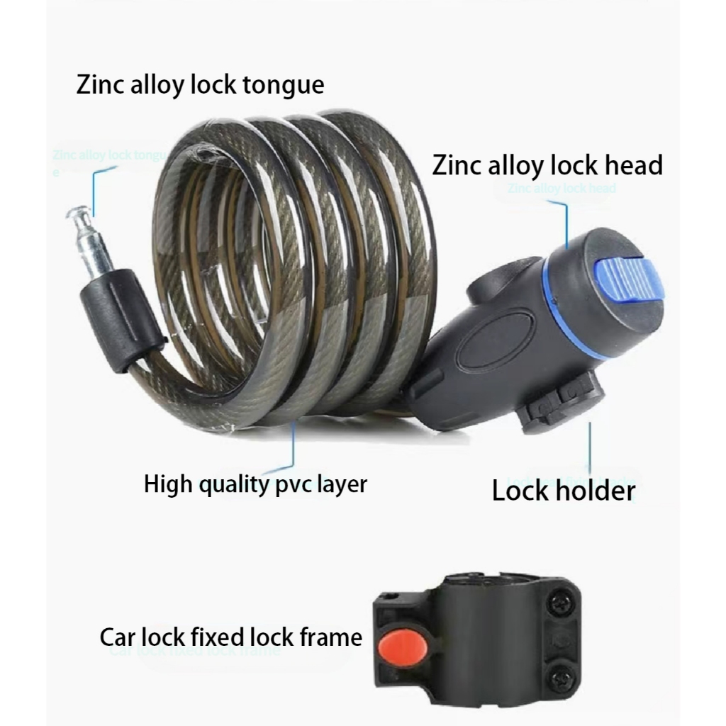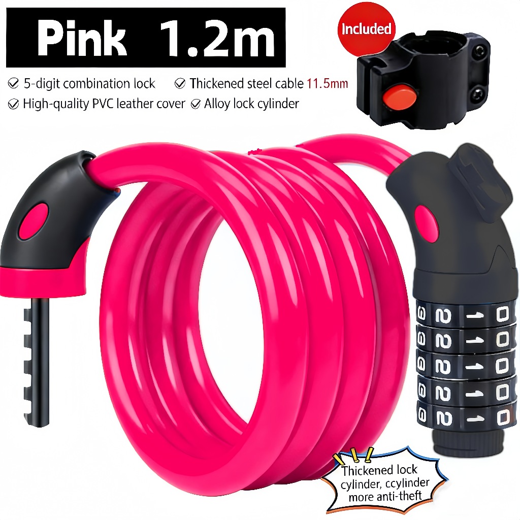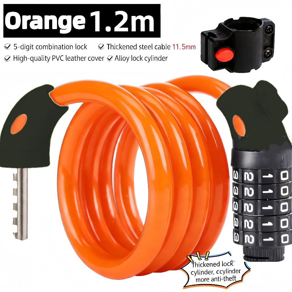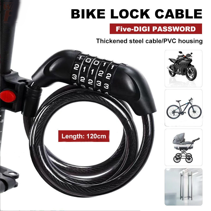 Bicycle Five-digit Password Lock, Mountain Bike Portable Steel Cable Waterproof Anti-theft Lock, Cyc