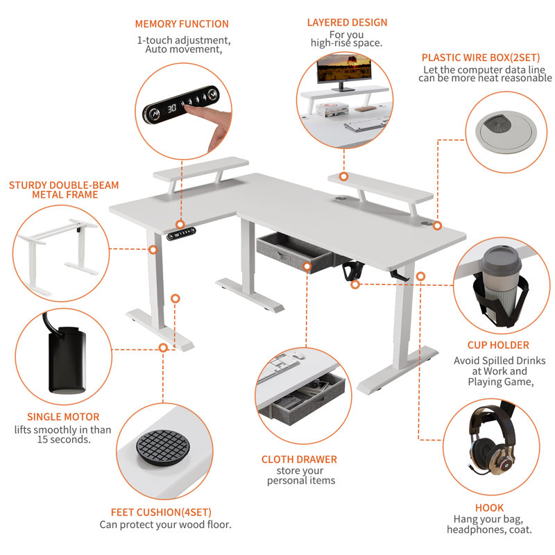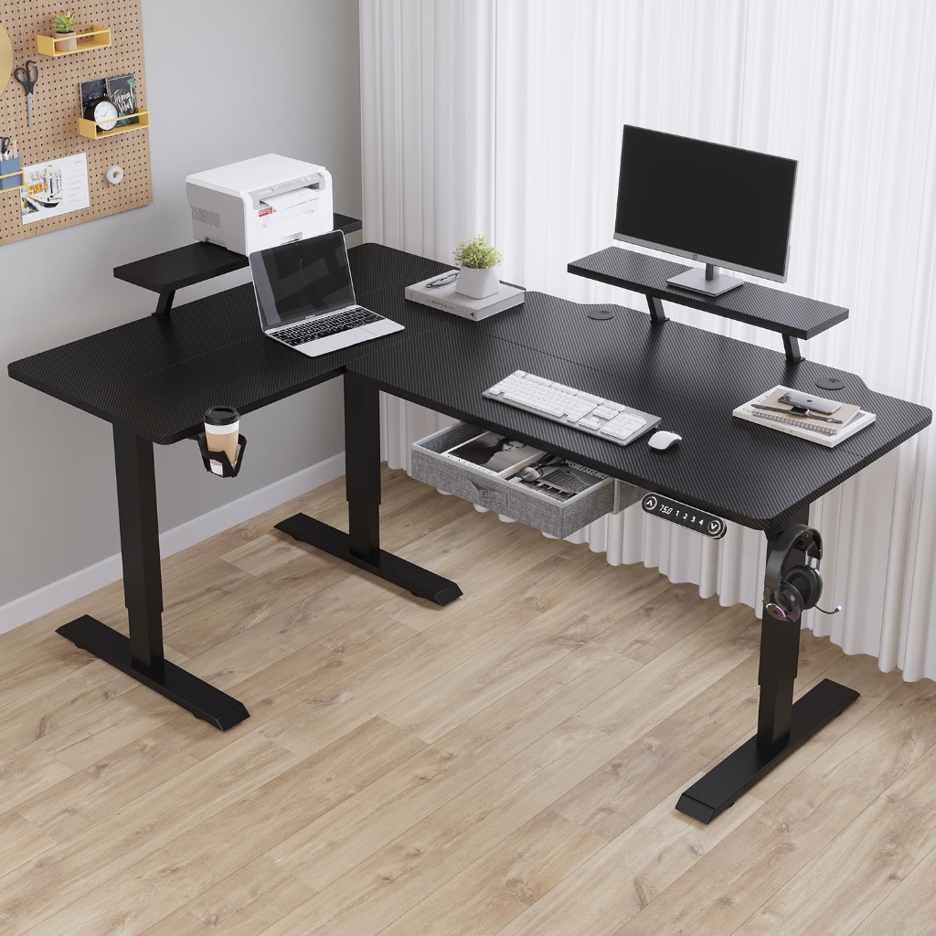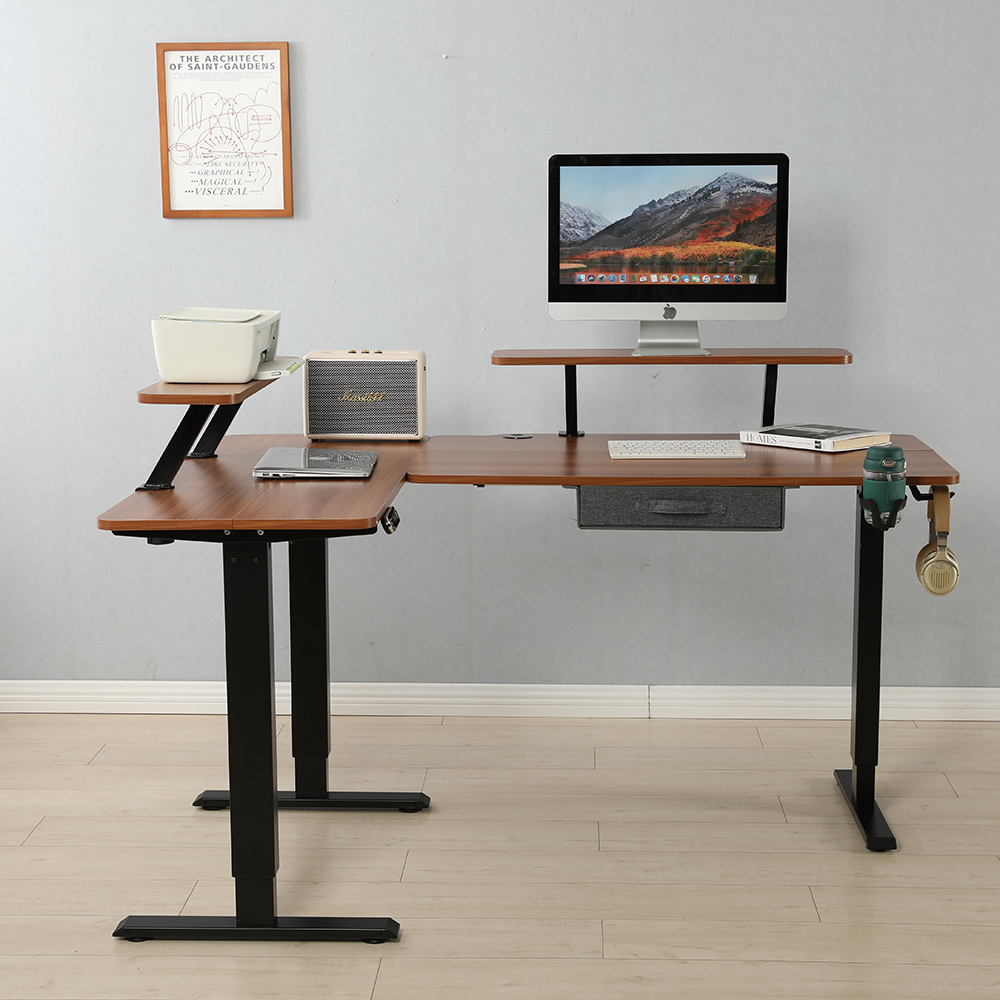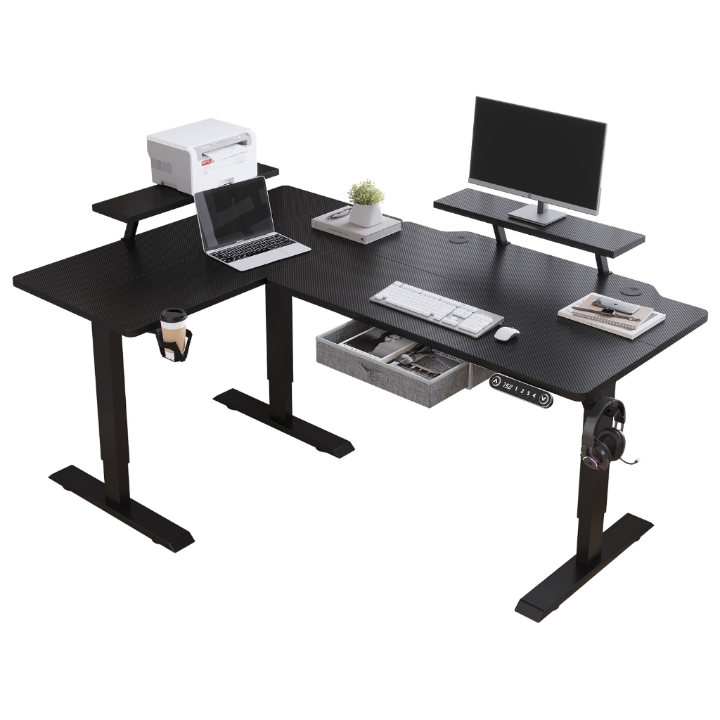 BilBil 1.6M L Shape Electric Standing Desk Multi-functional Table Single Motor Desk