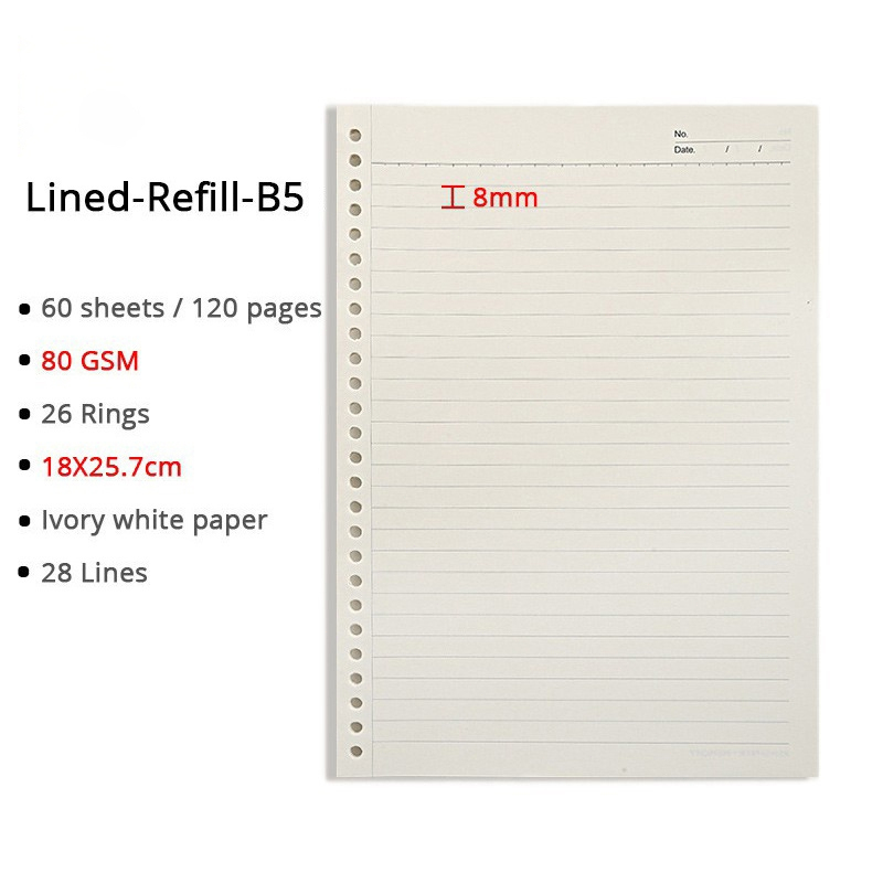 Binder Refill 20/26/30 Holes Loose-Leaf Notebook Refill Replacable Refill Pages W55