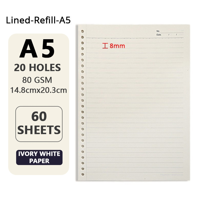 Binder Refill A5/B5/A4 Refill Pages Loose Leaf Binder Notebook Refill 60 Sheets W55