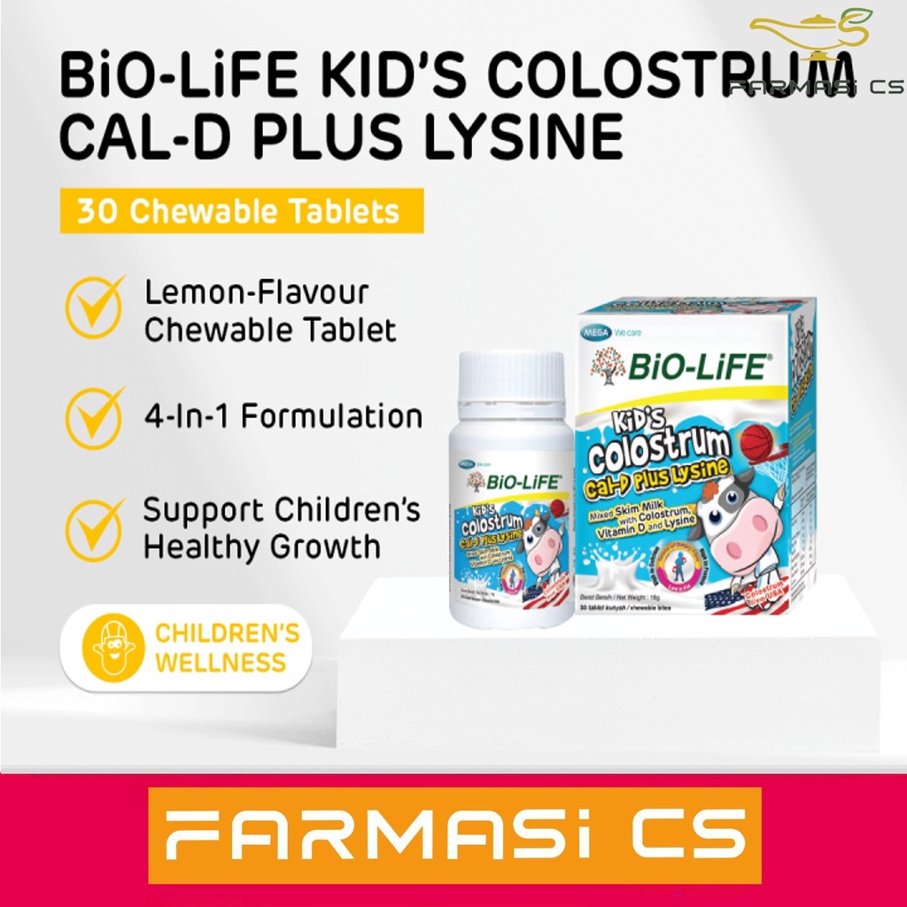 Bio-Life Kid's Colostrum Cal-D Plus Lysine 30 Chewable Tablets EXP:05/2025 [ Calcium Vitamin D Kids Biolife ]