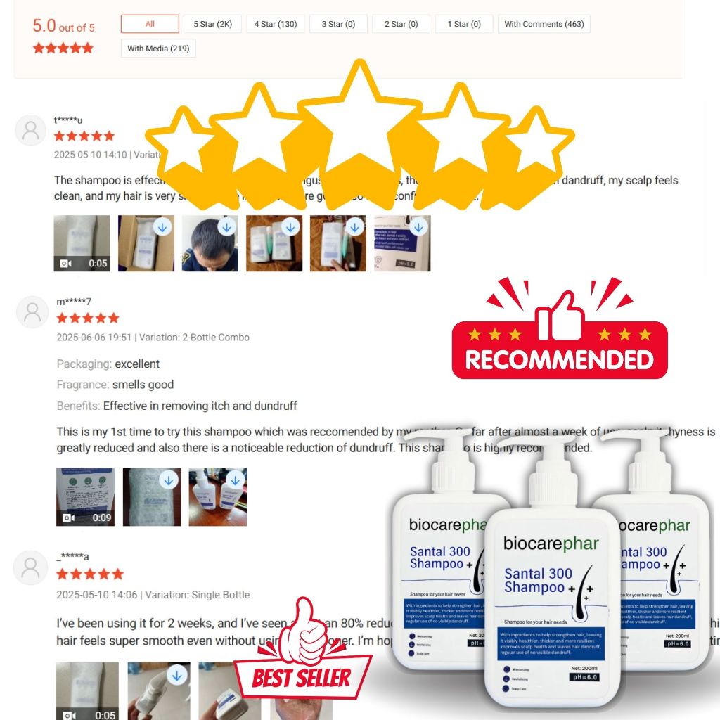 Biocare Santal 300 Herbal Shampoo for Sensitive Scalps Eliminates Dandruff Buy 2 Get 3 Free 1 Pc to