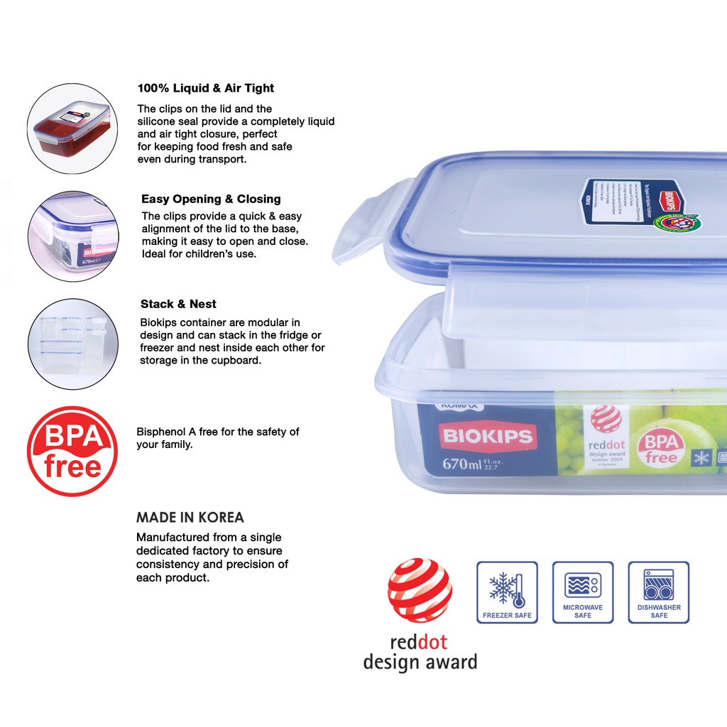 Biokips Rectangular Food Keeper Set 3P (3pcs 670ml) | 100% Airtight and Leak Proof | BPA Free