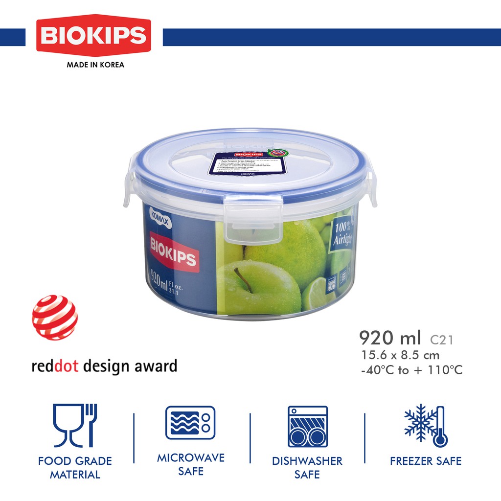 Biokips Round Food Storage Container 920ML BPA Free Airtight And Leakproof Foodkeeper