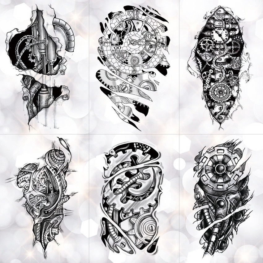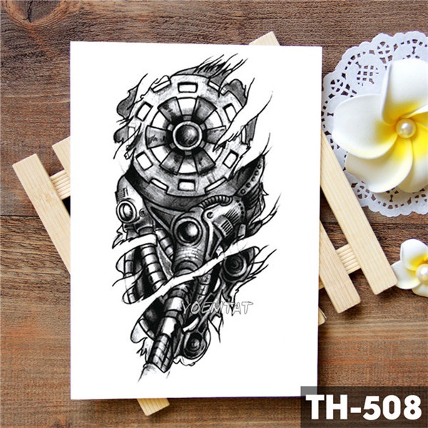 Bionic Mechanical Arm Gear Scorpion Temporary Tattoo Sticker Men Waterproof Tattoos Split Body Art Fashion Fake Black Tatoo Fashion Icon