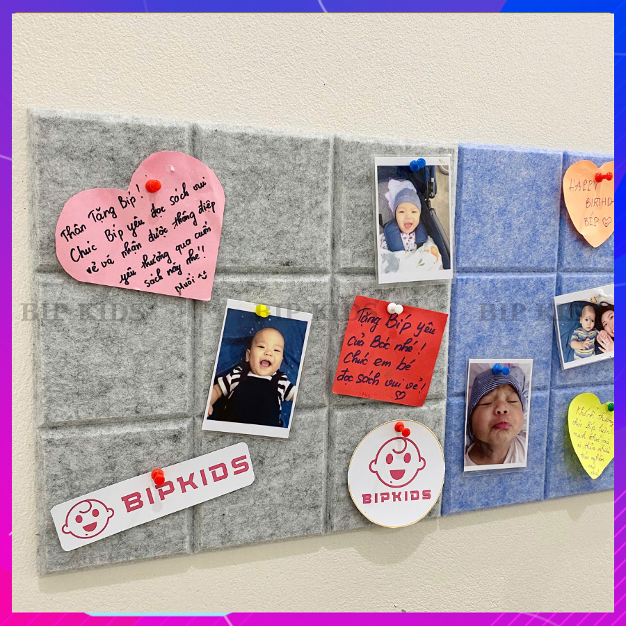 BIP KIDS square wall sticker felt board - GLUEED - 30x30 cm felt board for sticky notes and pictures for room decor.